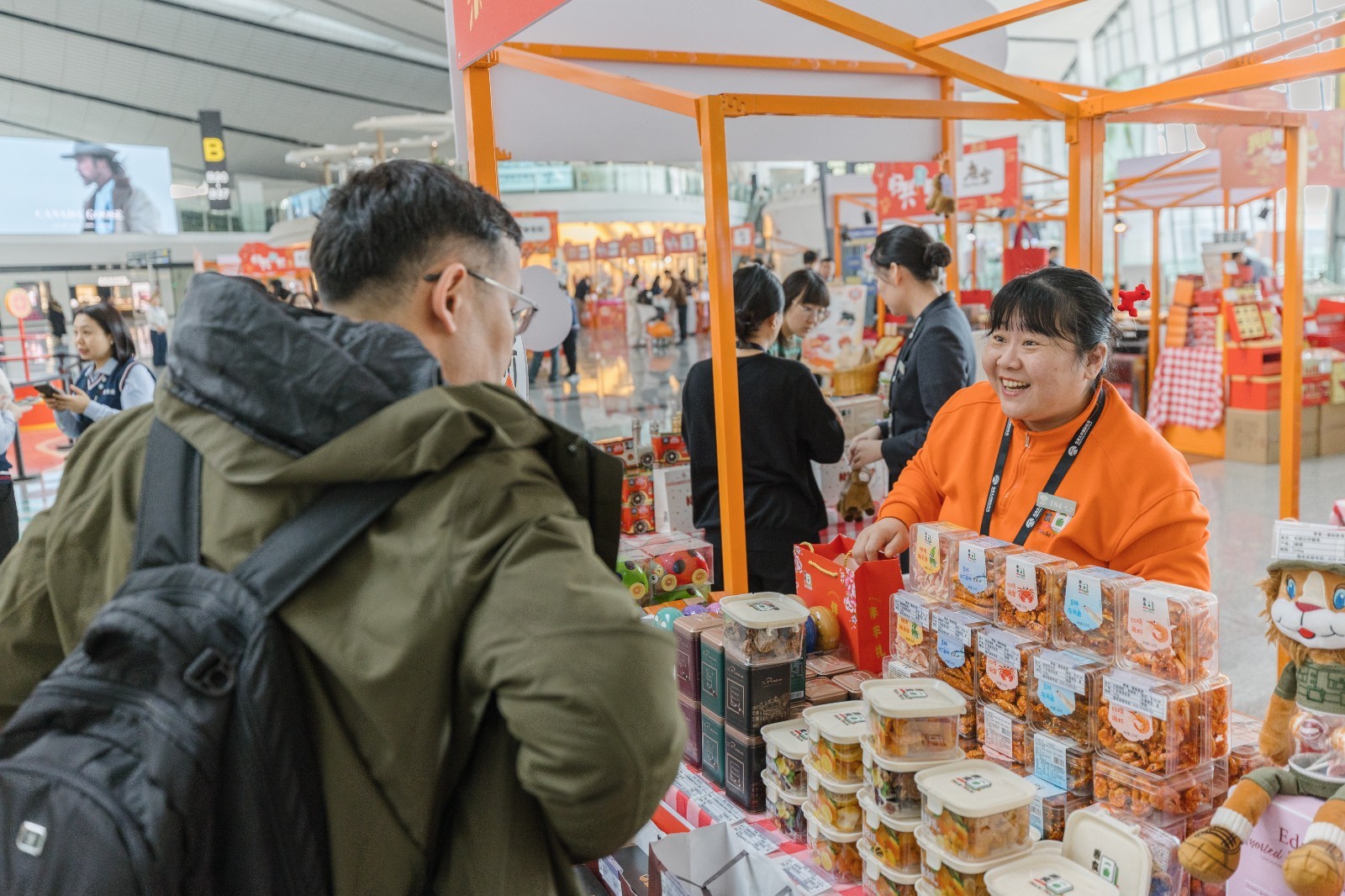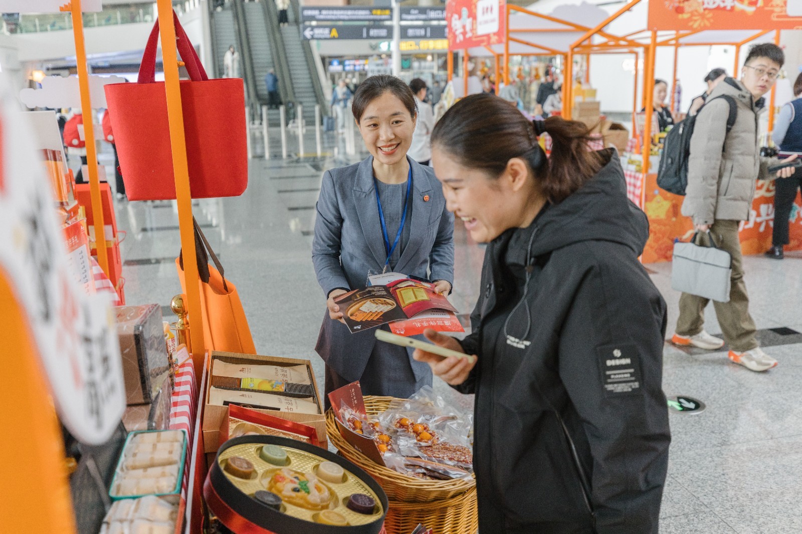 在业态布局方面,市集汇聚30余家优质品牌商户,展销商品涵盖地方特色美食、文创潮品及限量版年货礼盒等多种品类,满足旅客春运途中的多元年货采购需求。市集期间还限时发放专属优惠券,适用于年货礼品、特色零食等多款指定商品,助力旅客实现“欢乐购物、实惠出行”。