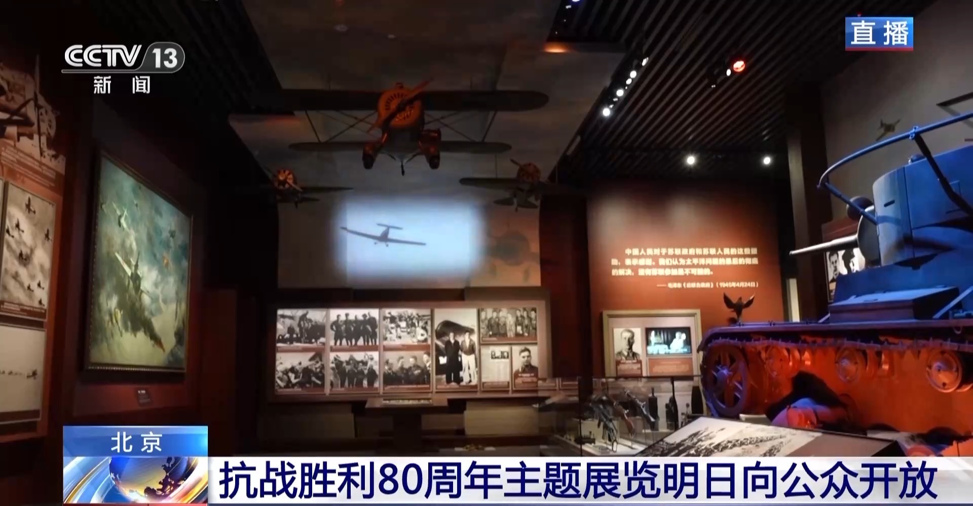 馆内的《为了民族解放与世界和平》主题展将于明天正式对公众开放。展览面积超过1.2万平方米,展出照片超过1500张,文物超过3200件,全景式展现了中国人民14年伟大抗战的光辉历程,体现了中国共产党在抗日战争中的中流砥柱作用和中国人民为世界反法西斯战争胜利作出的重大历史贡献。