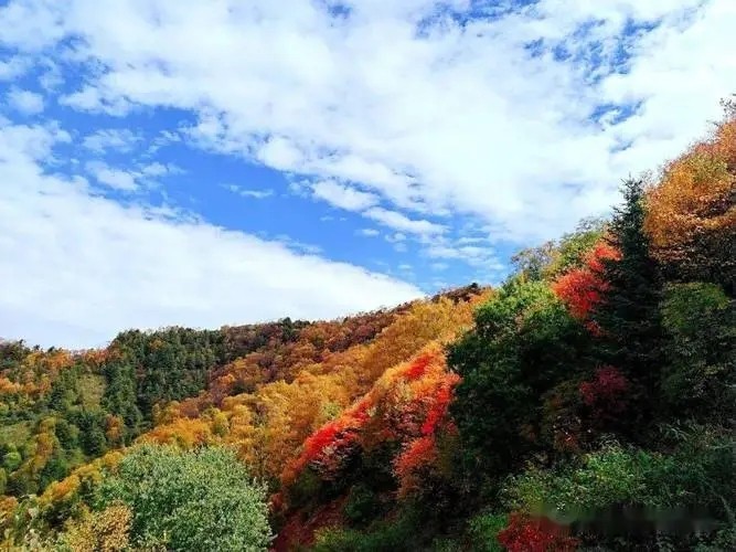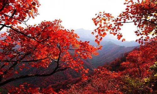 在三门峡甘山国家森林公园的群山上,层林尽染,红叶满山。三门峡甘山国家森林公园林区总面积12万亩,植物种类多达1500多种,植被覆盖率高达95%。金秋时节正是各种树叶泛红的时候,五角枫、黄栌、漆树等树叶变幻出不同的颜色,成为这个季节最为壮丽的自然景观。