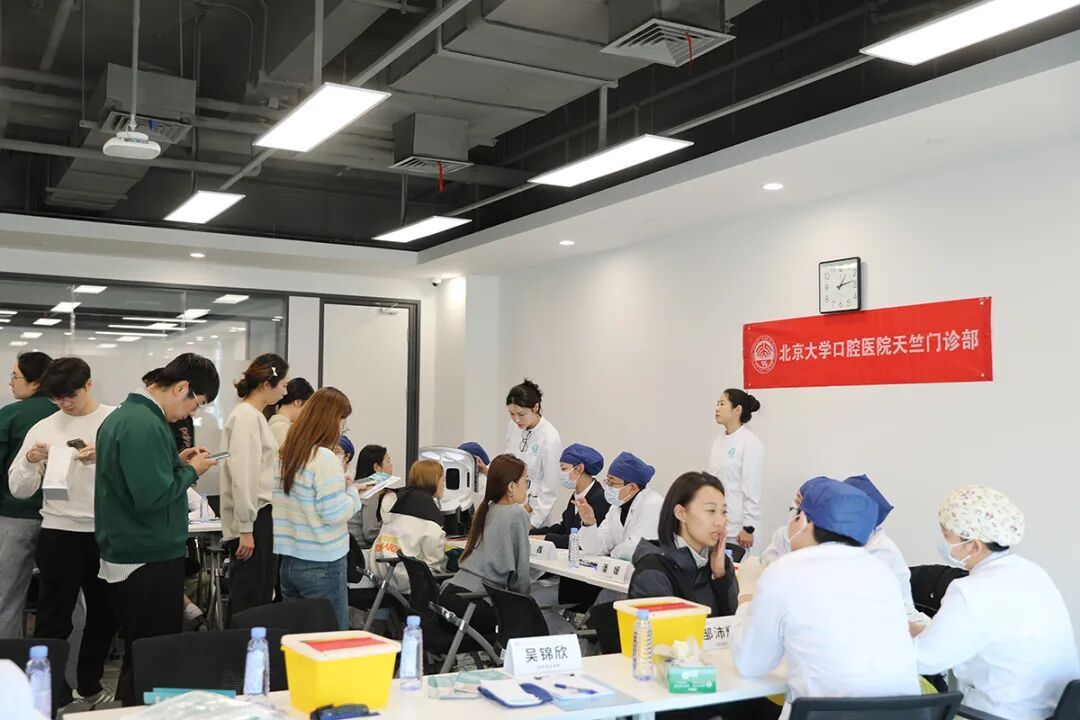本次出诊的医疗团队由北大口腔天竺门诊部9名临床经验丰富的医师领衔,配备专业护理人员及后勤保障人员,诊查范围覆盖牙体牙髓、牙周、修复、正畸、口腔黏膜等核心领域,为企业员工提供“一站式”口腔健康解决方案。