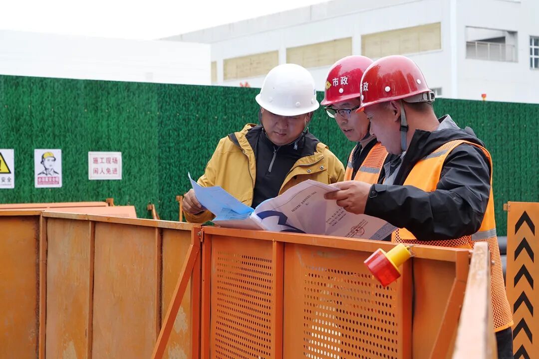 走进项目施工现场,施工围挡整齐排布。施工人员身着安全工装,或手持工具排查地下管线走向,或合力搬运施工材料……挖掘机不时低鸣,施工人员小心清理管线迁改区域的土方。技术人员按照图纸对照现场标记核对数据,确保每步作业精准无误。