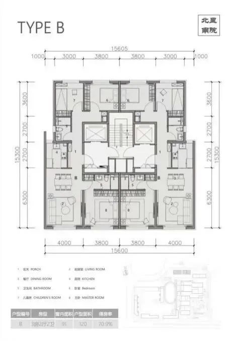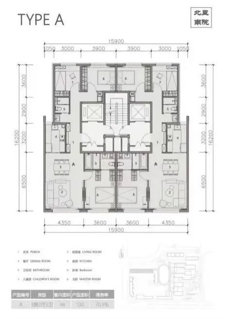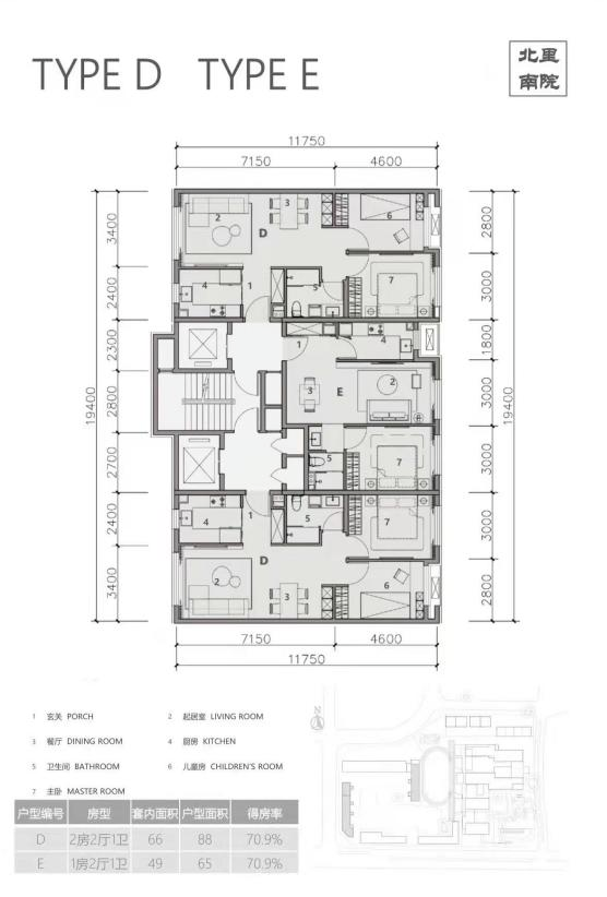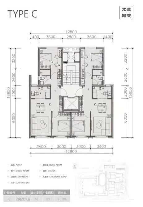 中信城四期,一共6栋7-15层高板楼,产品面积段为65平1居,88平、89平两居,120平、130平3居,得房率预计约71%。