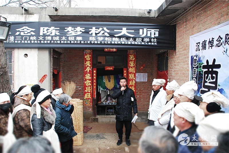 陈相林主持追悼会陈家沟家族理事会代表陈一华致悼词刘洪奇致辞弟子代表致辞陈梦松先生长子陈庆杰代表家属致答谢辞陈梦松先生的一生是为太极拳事业奋斗的一生,他12岁起就随太极拳一代宗师陈照丕先生习练太极拳,系统、全面的继承了传统太极拳械和理论知识。