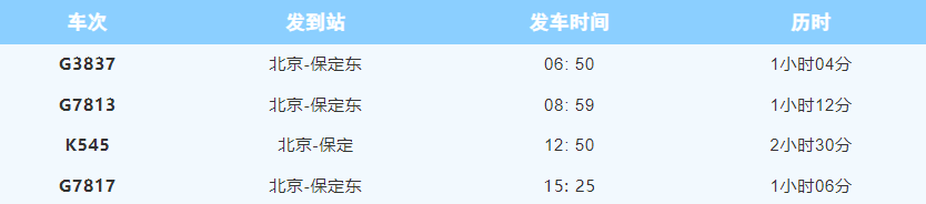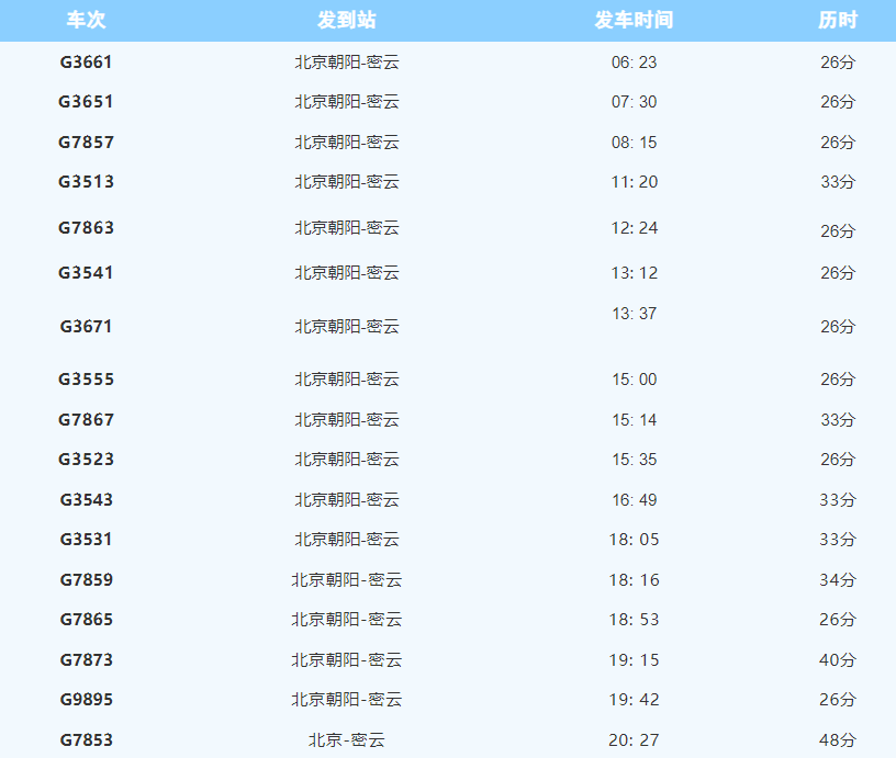 文中列车时刻表所涉及各趟列车