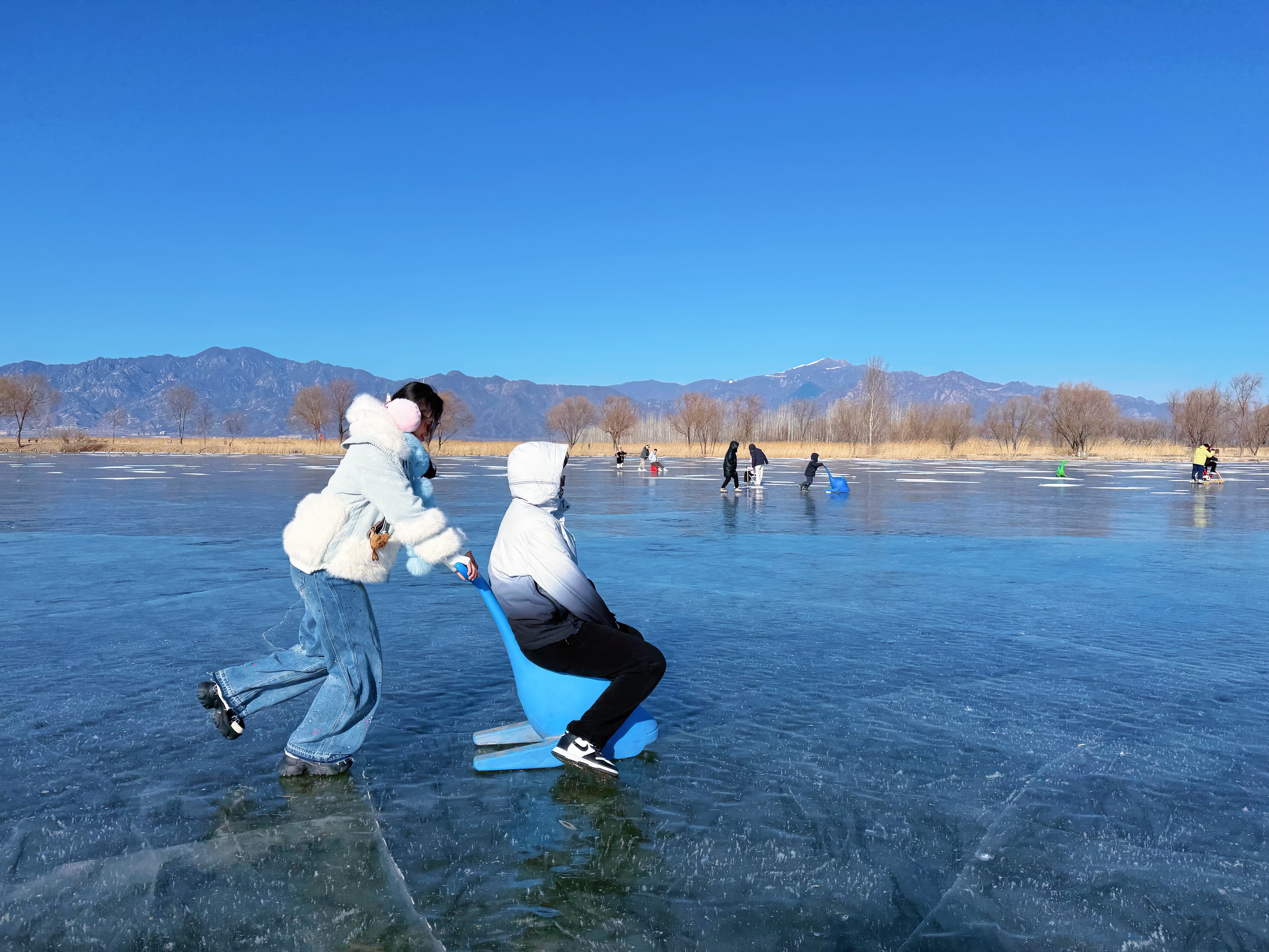 作为本次冬季升级的核心文旅产品,野鸭湖天然冰场凭借“不限时免费开放”成为亮点。园区免费提供怀旧冰车等经典冰上项目,让游客充分享受冰上嬉戏的乐趣,重拾童年记忆。