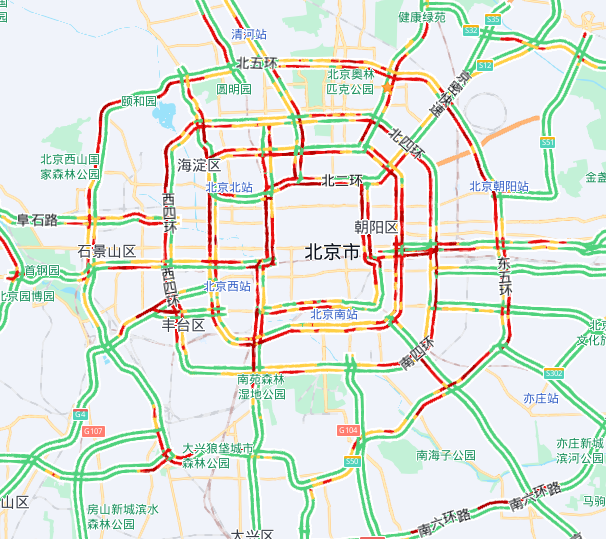 城区二环、三环、东四环部分路段双向,北四环、北五环西向东方向,西四环、东西五环北向南方向,阜石路、万泉河路、通惠河北路、丰体南路等联络线出城方向部分路段,京藏、京承、京开、京港澳、京通快速等高速公路部分路段出京方向易出现车辆行驶缓慢情况。中关村、亮马桥、月坛等区域交通压力较大。