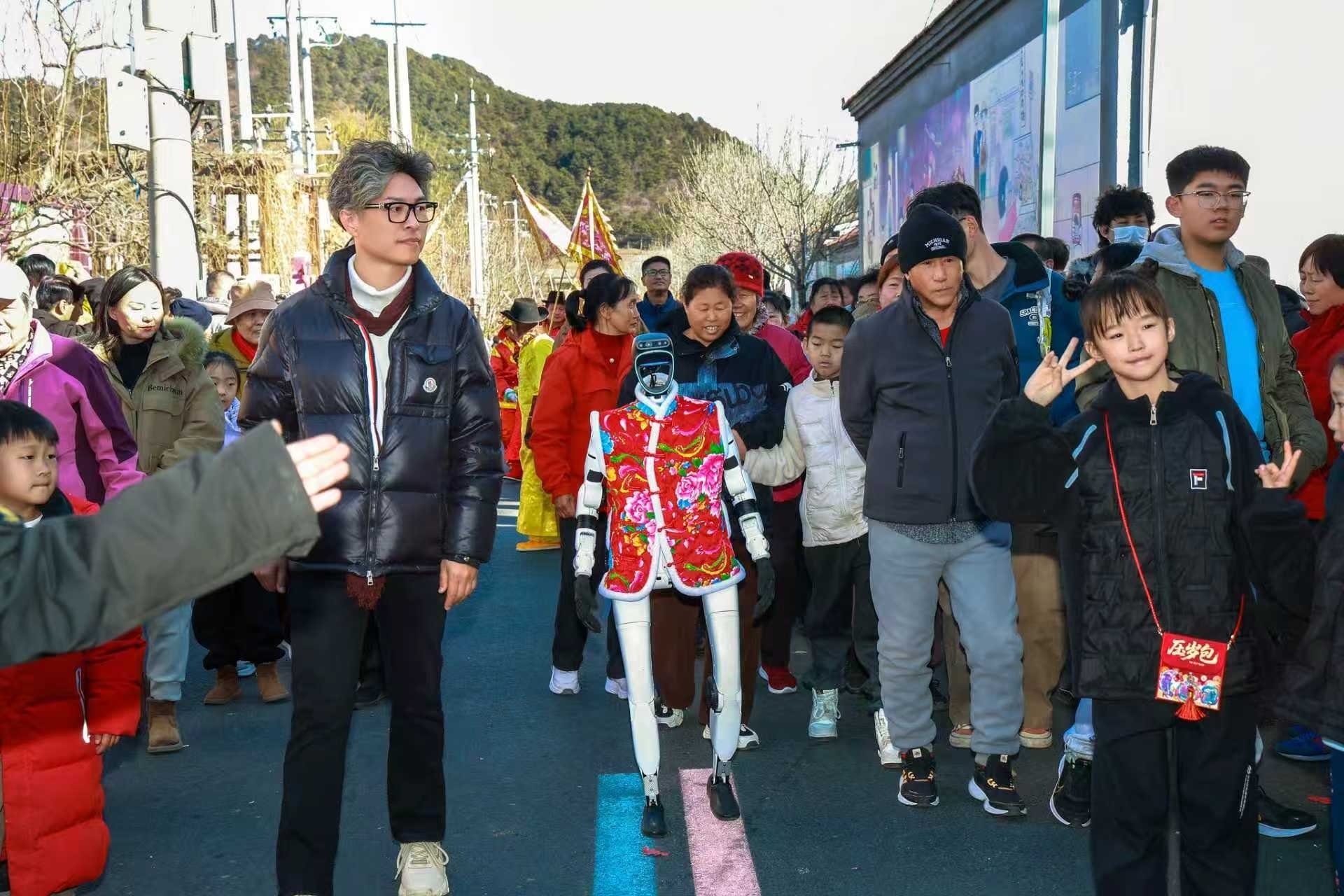 主会场溪翁庄村文化广场内,文化展演、年味市集、游园互动三大板块联动发力,好戏连台。作为活动的创新环节,智能机器人与传统舞狮队同台互动,老民俗搭配新科技,“土洋”结合解锁别样精彩。