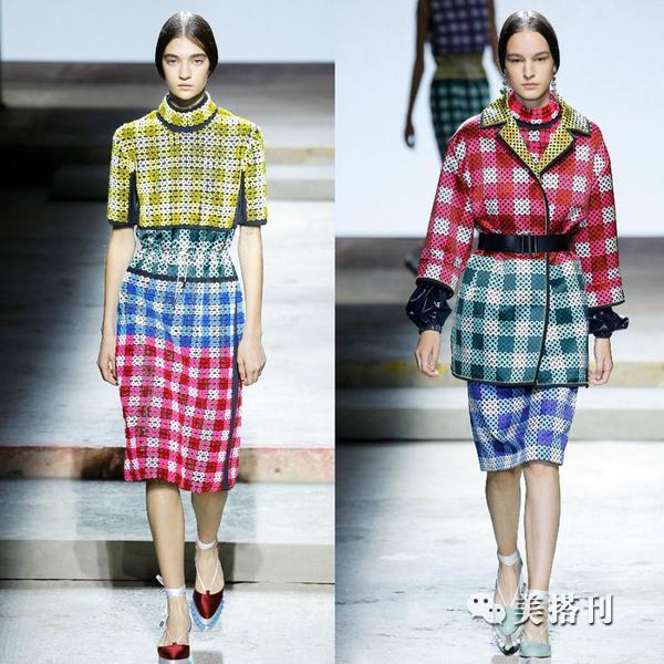 ▲2017年的秀场已经有很多格子服装造型崭露头角,Pringle of Scotland、Marissa Webb秀场上的格纹走简约清爽风。还有很多的品牌设计引用了维希格纹元素,整体风格都是偏向于青春活力的。