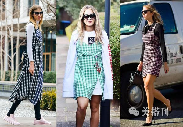 ▲简单又百变的单品,当属格纹吊带连衣裙。春夏秋都能穿的一款裙子,穿上一件内搭教你玩转高阶叠穿。