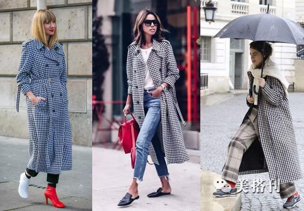 ▲经典黑白维希格纹的超长款风衣,充满法式风情的同时,自备走路带风的潇洒感,搭配一双双色高跟踝靴格外跳脱亮眼。如果外套的版型是oversize的,那么也试试内搭连帽卫衣,把卫衣的帽子翻出来,这样会非常减龄,而且搭配会更有层次感。