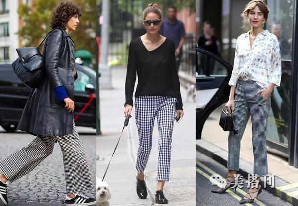 ▲裤装的版型有很多种,格纹喇叭裤无尽的拉长了下半身,同时下摆飘逸灵动。Olivia秉持一贯的优雅风格,但混搭之下却是十分休闲。维希格的格纹直筒裤搭配英伦风的牛津鞋,休闲帅气的一身。
