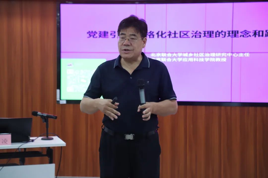 为充分发挥党建引领在基层网格化治理中的核心作用,提升基层网格员服务效能,推动社区治理精细化,8月8日,太阳宫地区召开“暖阳”讲堂专题授课辅导培训会,邀请北京联合大学应用科技学院教授李凌作《党建引领网格化社区治理的理念创新和路径方法》专题辅导。地区各社区书记、副书记及委员代表40余人参加。