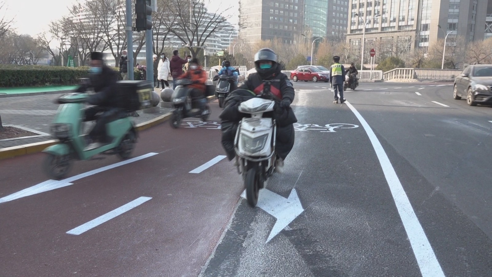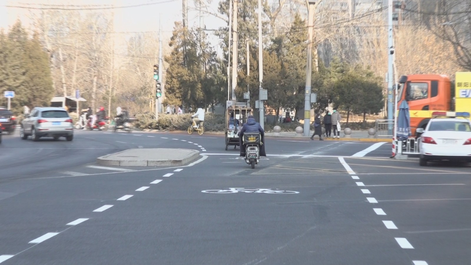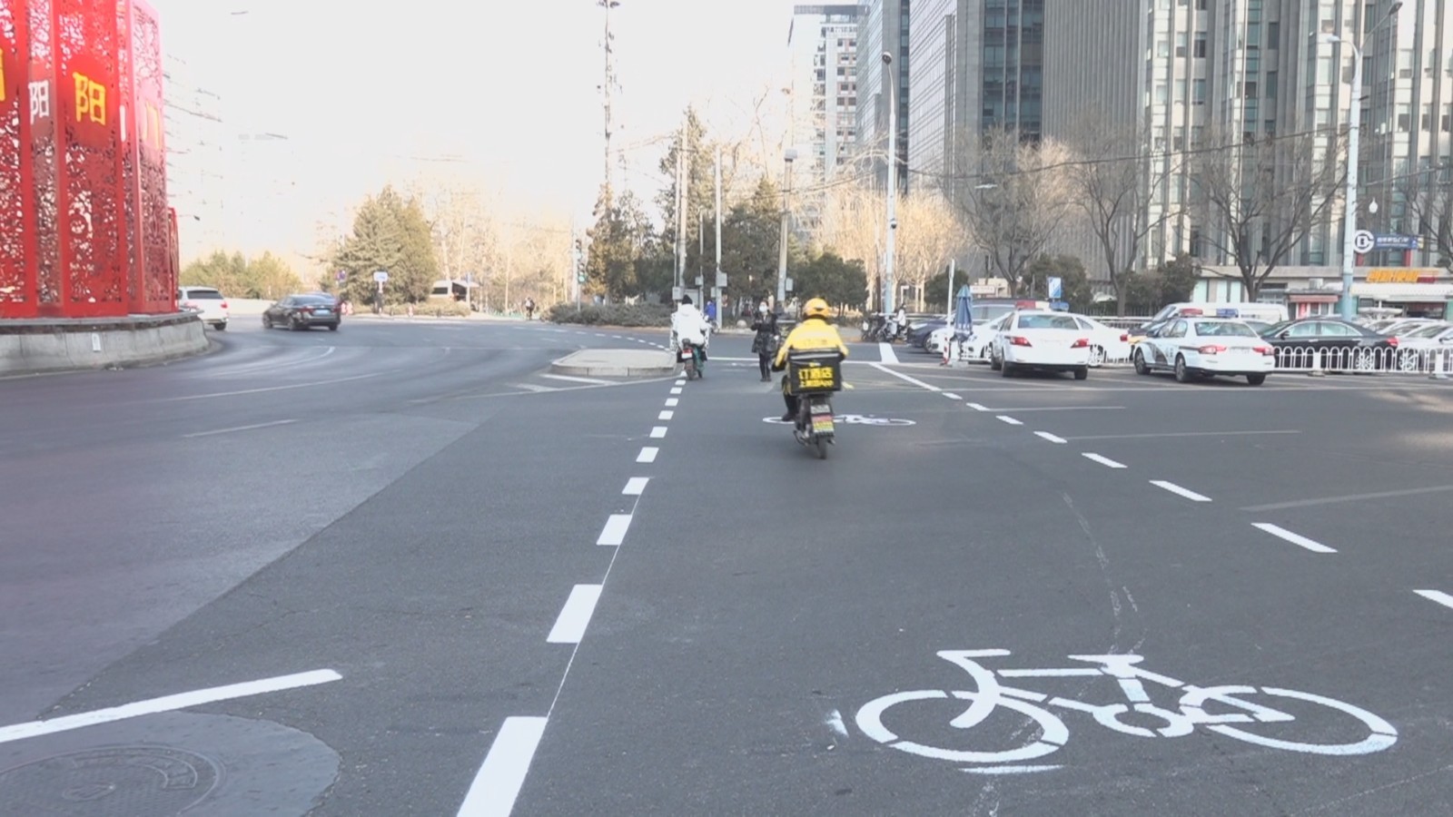 “以前非机动车通过环岛轨迹很混乱,有的从里面走,有的从外面走。”北京市交管局秩序处优化科科长李磊介绍,此前,朝阳门桥环岛4处进口道和4处出环岛点位设置有8组机动车和非机动车信号灯,车辆进出环岛可以按照信号灯指示通行。而环岛内部分点位未施划非机动车引导线,通行空间不足,缺少等待区和信号灯,行人过街也缺少信号灯指示,非机动车、行人与机动车流交织,存在一定安全隐患。