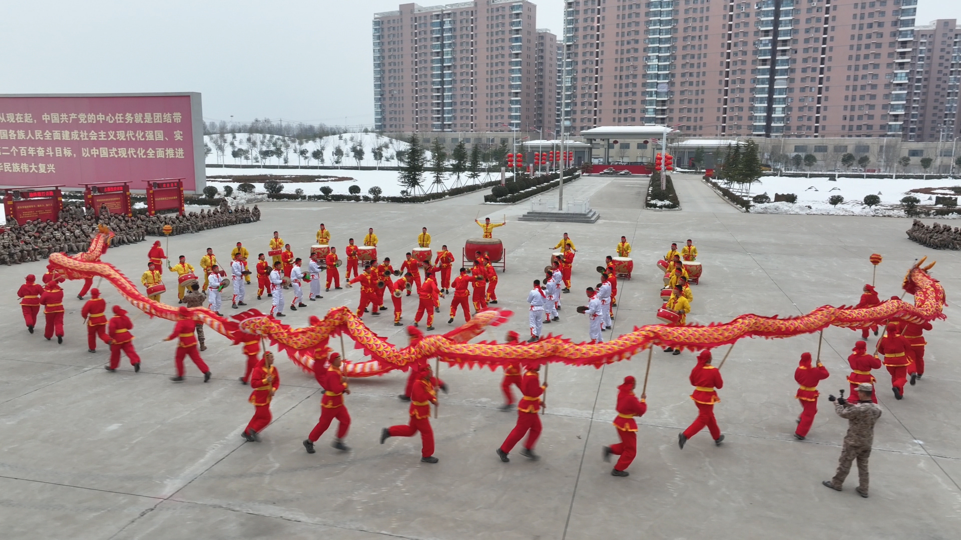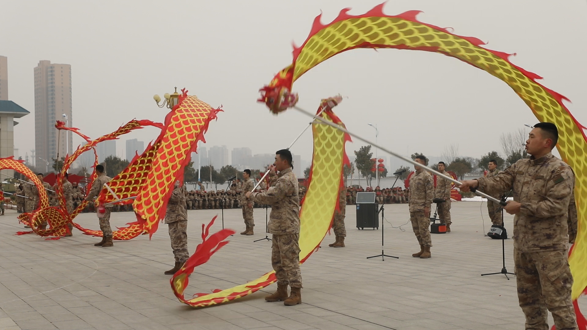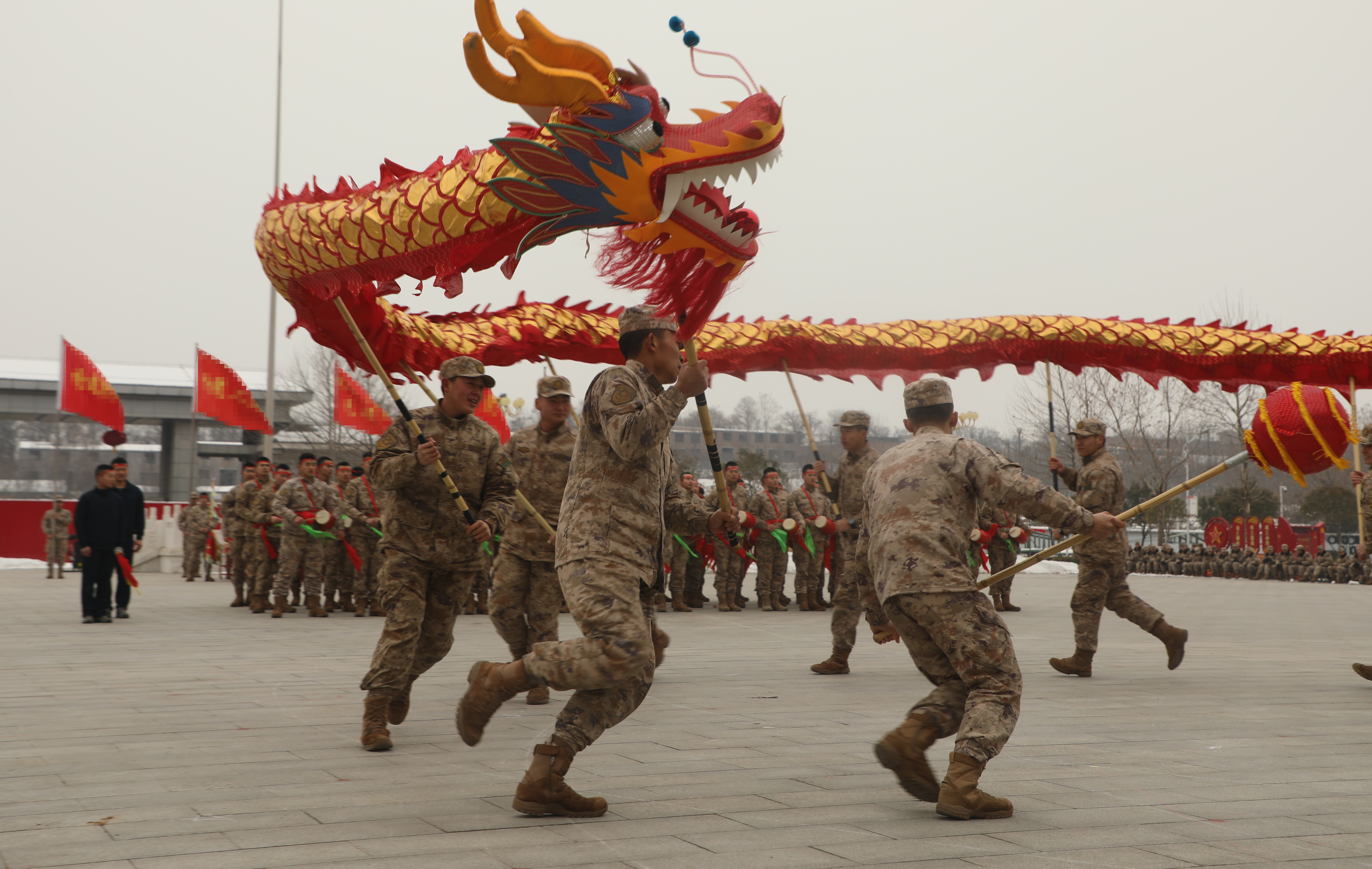 官兵们手持长龙