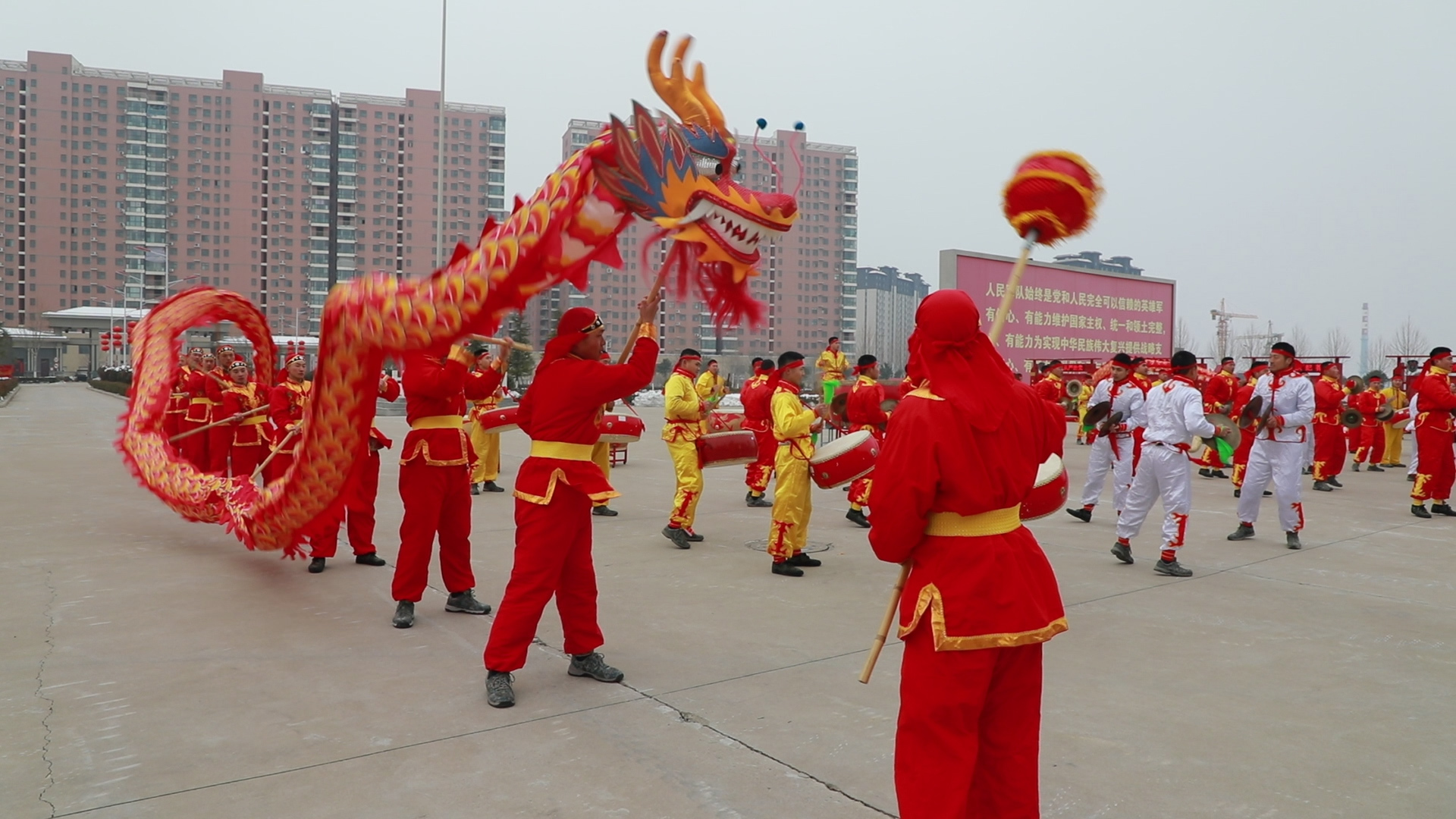 在铿锵有力的锣鼓声中舞动