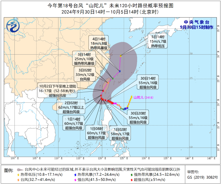 “山陀儿”或为10月登陆我国最强台风 台湾岛需警惕极端风雨