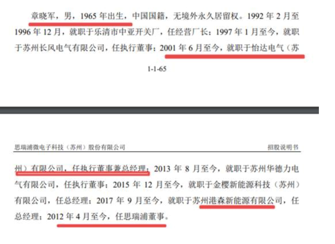 然而,招股书中并未对章晓军任职思瑞浦(苏州)微电子有限公司董事长的信息进行披露。