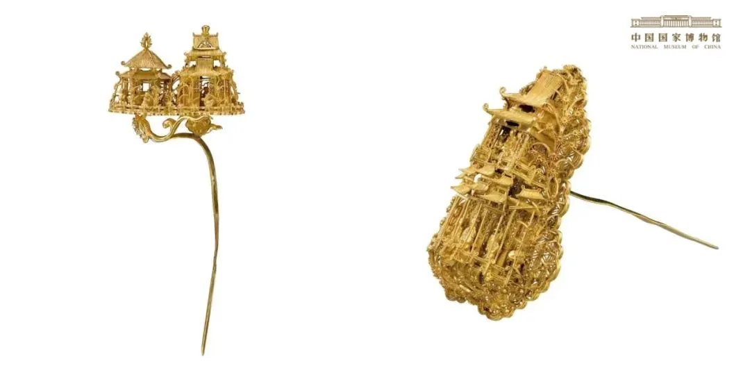 而楼阁发簪的外形设计则取自,宋元明绘画中的楼阁图式。