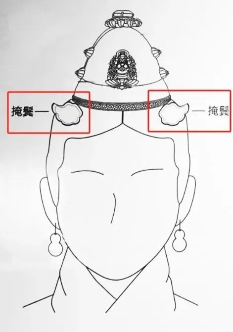 明代女子钟爱整齐、不露碎发的发式,掩鬓正好可以在发线处压住头发,通常成对儿出现,左右对称。