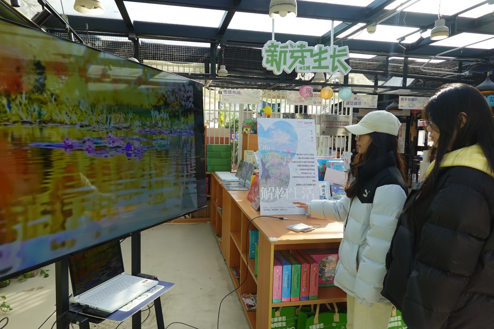 本次展览的最大亮点在于“艺术+科技”的深度融合与校企合作的创新实践。在“解构生活·艺术区”,观众不再只是旁观者。策展团队“新芽生长”联动北京工业大学赵静老师团队与北京城市学院贺鑫老师团队,将艺术大师莫奈的多幅经典画作转化为可交互的线上动态空间。观众仅需挥动手势,便能改变莫奈花园的光影与色彩,亲身解构印象派的艺术密码。同时,为梵高《星月夜》打造的专属沉浸式打卡场景,也让艺术体验与社交分享完美结合。