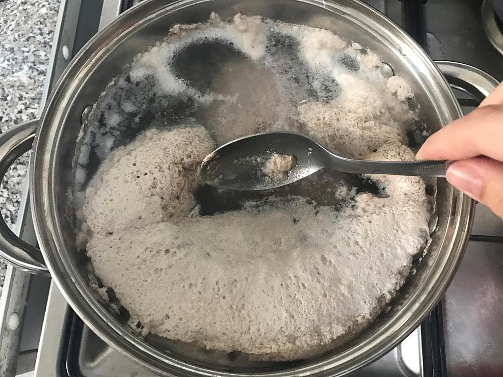 第二阶段的浮沫通常是白色,主要是肉中溶出的少量蛋白质在高温下变性凝集,还有一些脂肪。这种浮沫没有太多异味,但会让肉汤不够清澈养眼。随着熬煮时间变长,这种浮沫会因蛋白质的进一步水解而消失。如果介意,可以去除。