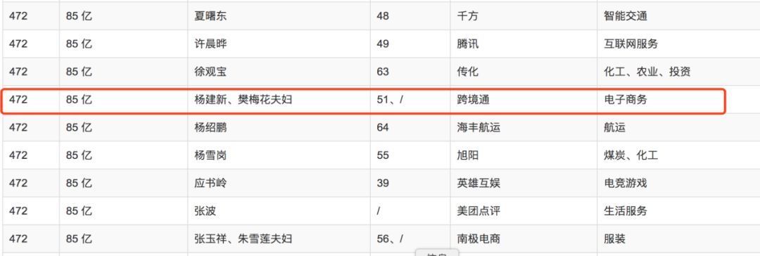 截至2019年三季度末,山西富豪杨建新为跨境通第一大股东,持股18.19%;徐佳东紧随其后,持股比例16.64%;周敏为第三大股东,持股3.18%。据《2019胡润百富榜》,杨建新、樊梅花夫妇最新身价为85亿元,连续多年蝉联山西首富。