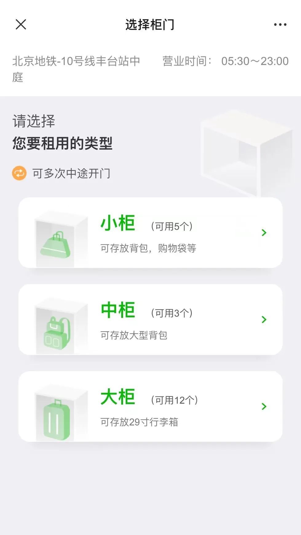 今天下午,记者来到地铁10号线丰台站看到,站厅内新摆放了一排黄色的寄存柜,乘客通过微信扫码,就可以使用寄存柜存取行李。北京地铁资源开发经营有限公司副总经理齐艳介绍,共享寄存柜运营时间为5:30至22:30,乘客在抵达车站后无需出站即可寄存行李,寄存柜设置了大中小3种规格的存储空间,可以满足不同物品的存放需求,根据柜体大小不同收取费用。