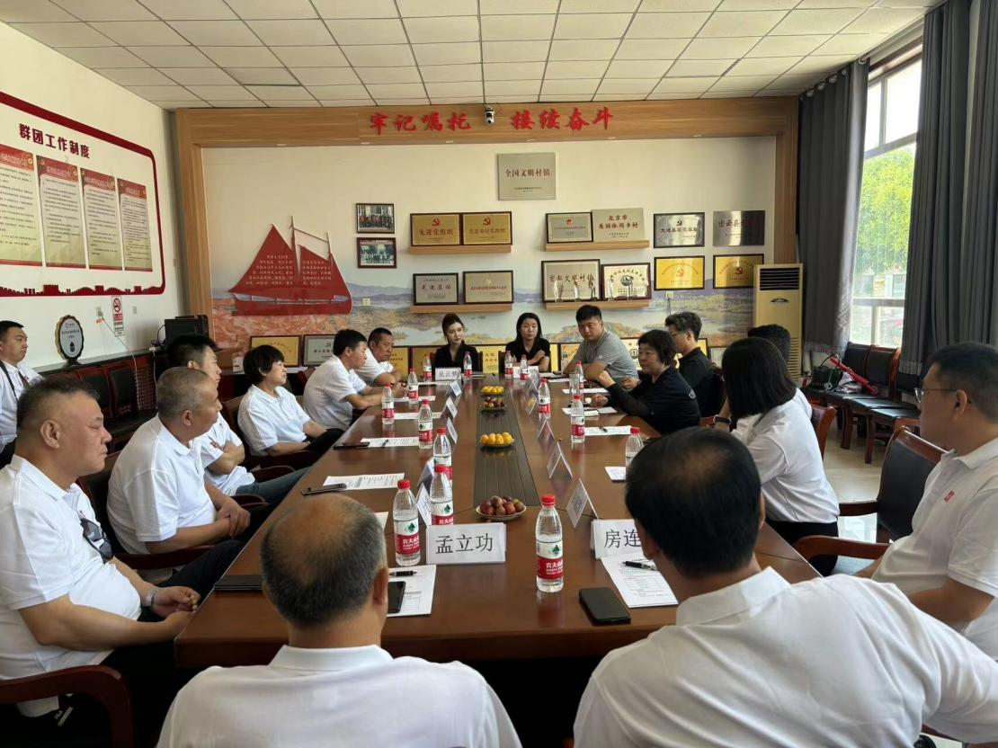 密云区溪翁庄镇尖岩村第一书记王淑平、北京农担公司怀柔及密云分公司负责人冯瑞山、北京怀柔融兴村镇银⾏董事长聂寰中,怀柔区怀柔镇下辖红螺镇村、芦庄村、东四村、西三村、甘涧村、孟庄村、红军庄村、卧龙岗村八个村的村书记,尖岩村民宿主代表印象民宿品牌创始人田洋参加调研活动。
