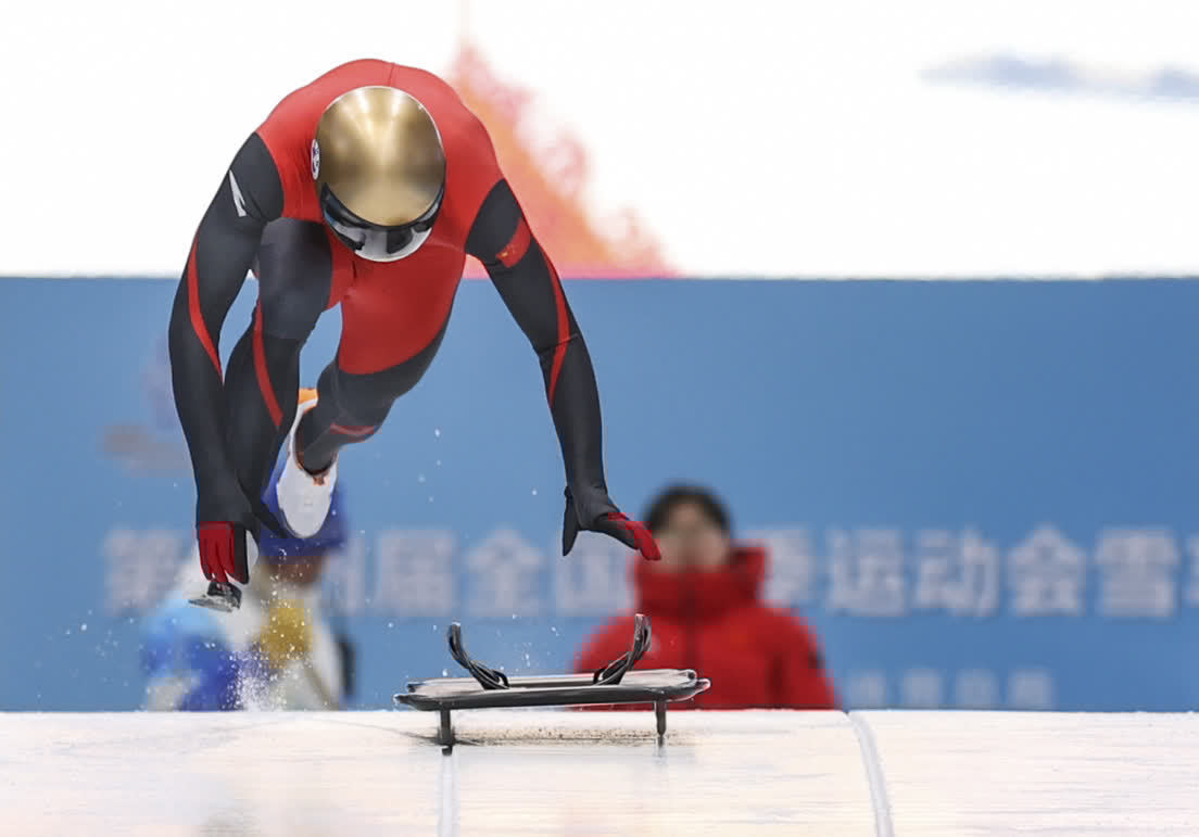 第十四届全国冬季运动会钢架雪车比赛。新华社供图