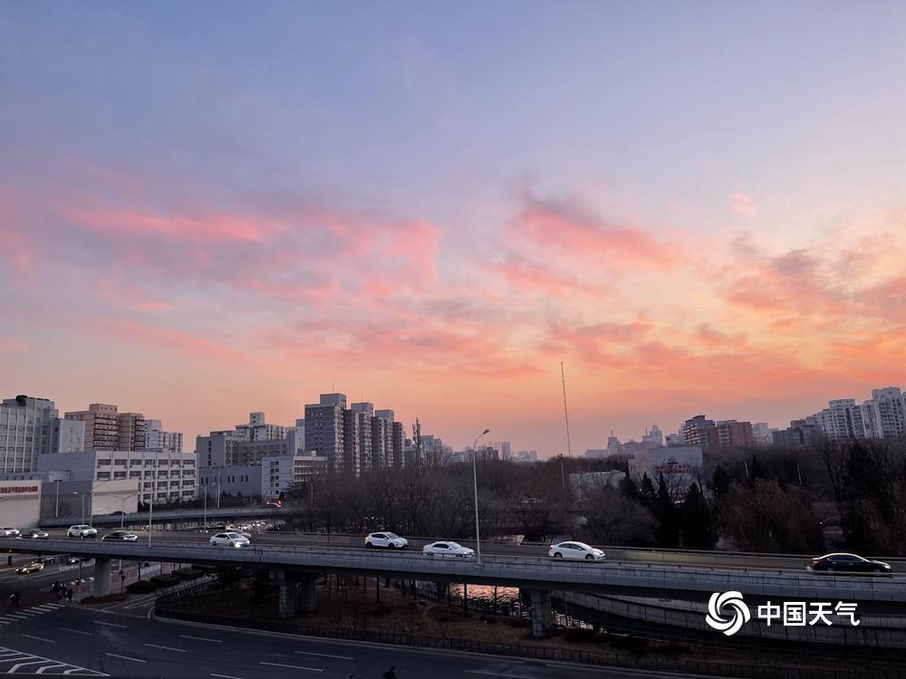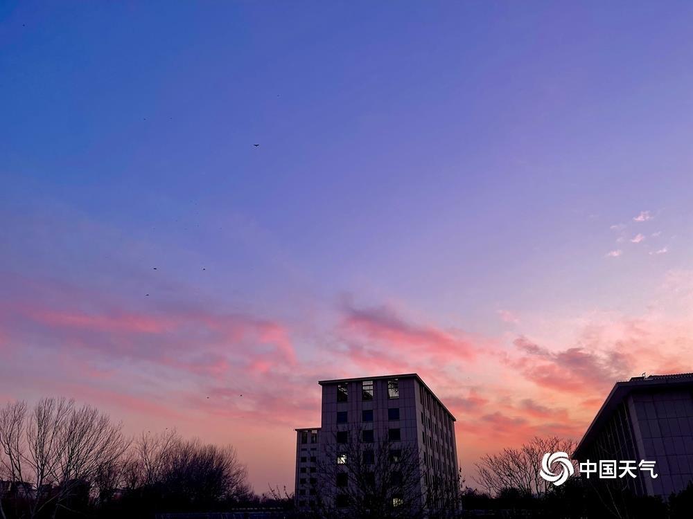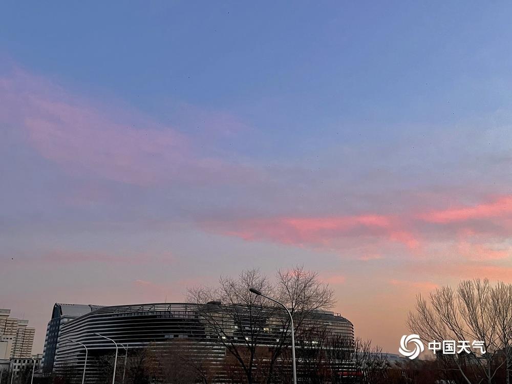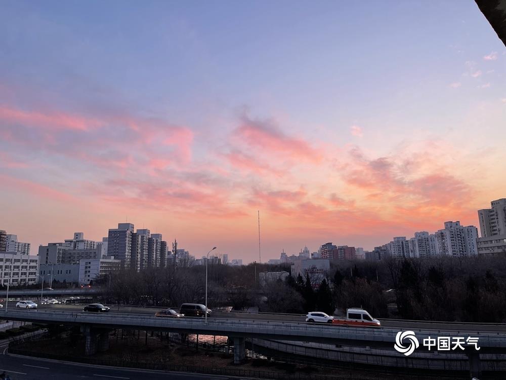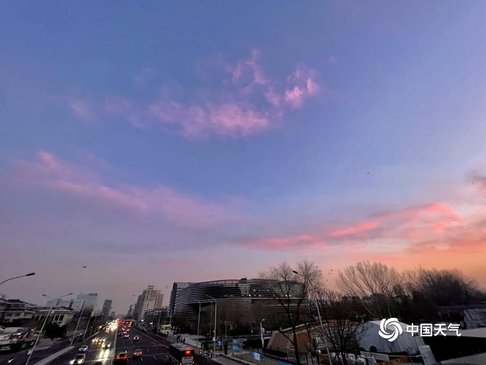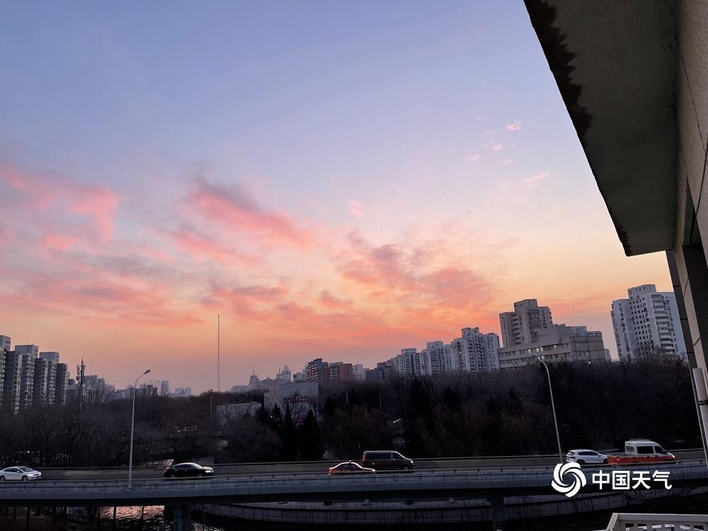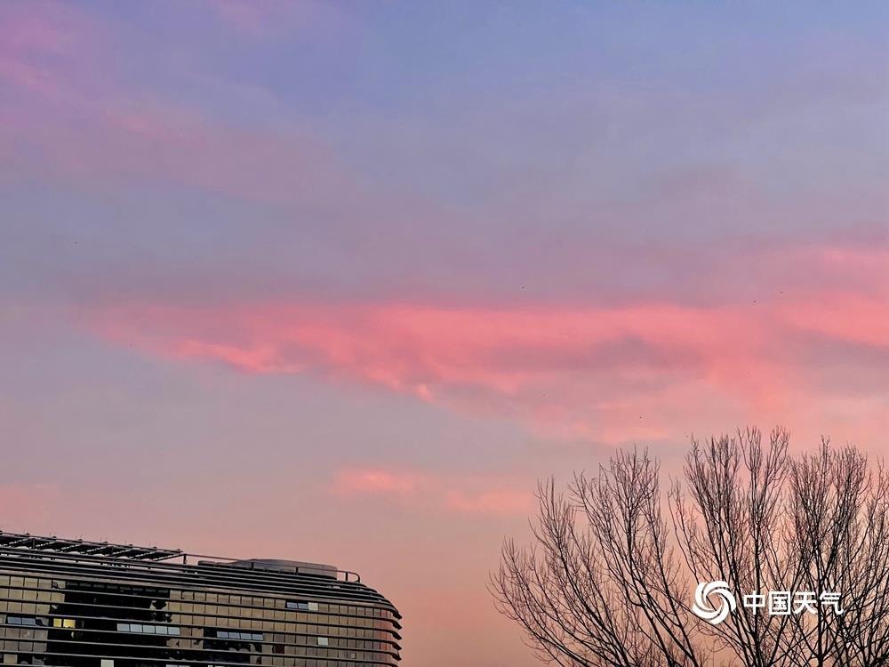 今天(1月14日)清晨,北京天空又现粉紫色朝霞,如梦如幻,给这个晴冷的早晨增添了一丝浪漫色彩。