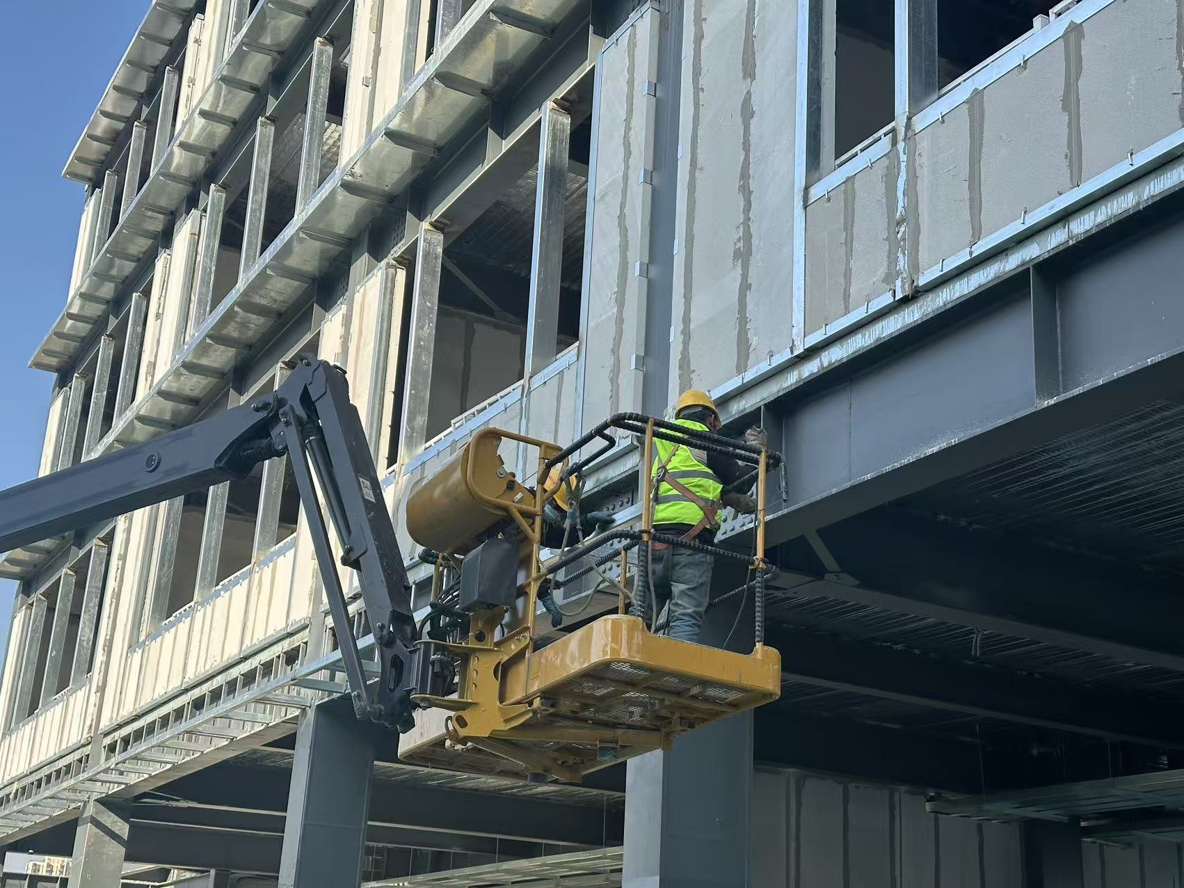 绿色低碳是回天地区重点项目建设的鲜明特色。在回天综合服务中心项目现场,施工人员正全力推进内部二次结构砌筑、外墙窗户安装及内墙条板安装等施工作业。“项目核心突出新能源利用、环境保护和节能减排理念,集成采用各类先进技术与工艺。其中,重点应用装配式构件安装、光伏发电及光伏空气源空调等技术,可有效提升环境保护成效、节约能源消耗、推动资源绿色高效利用,助力实现绿色发展目标。”回天综合服务中心项目经理吴栋介绍道。