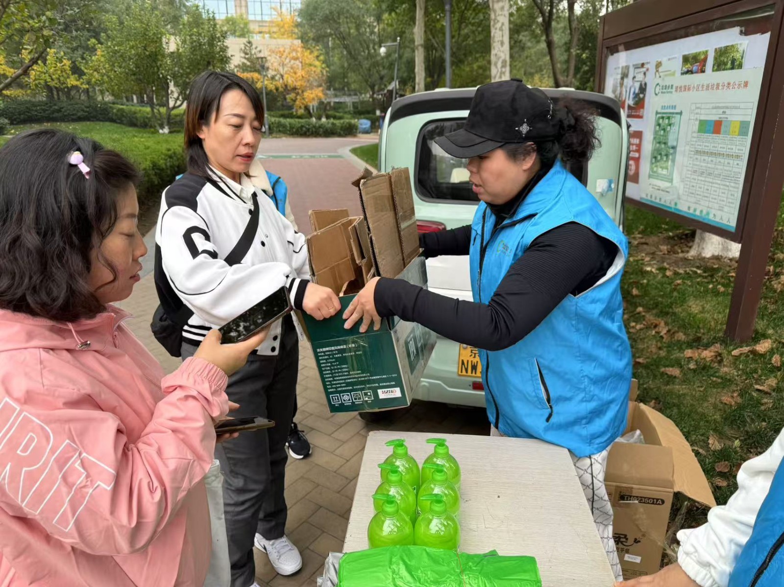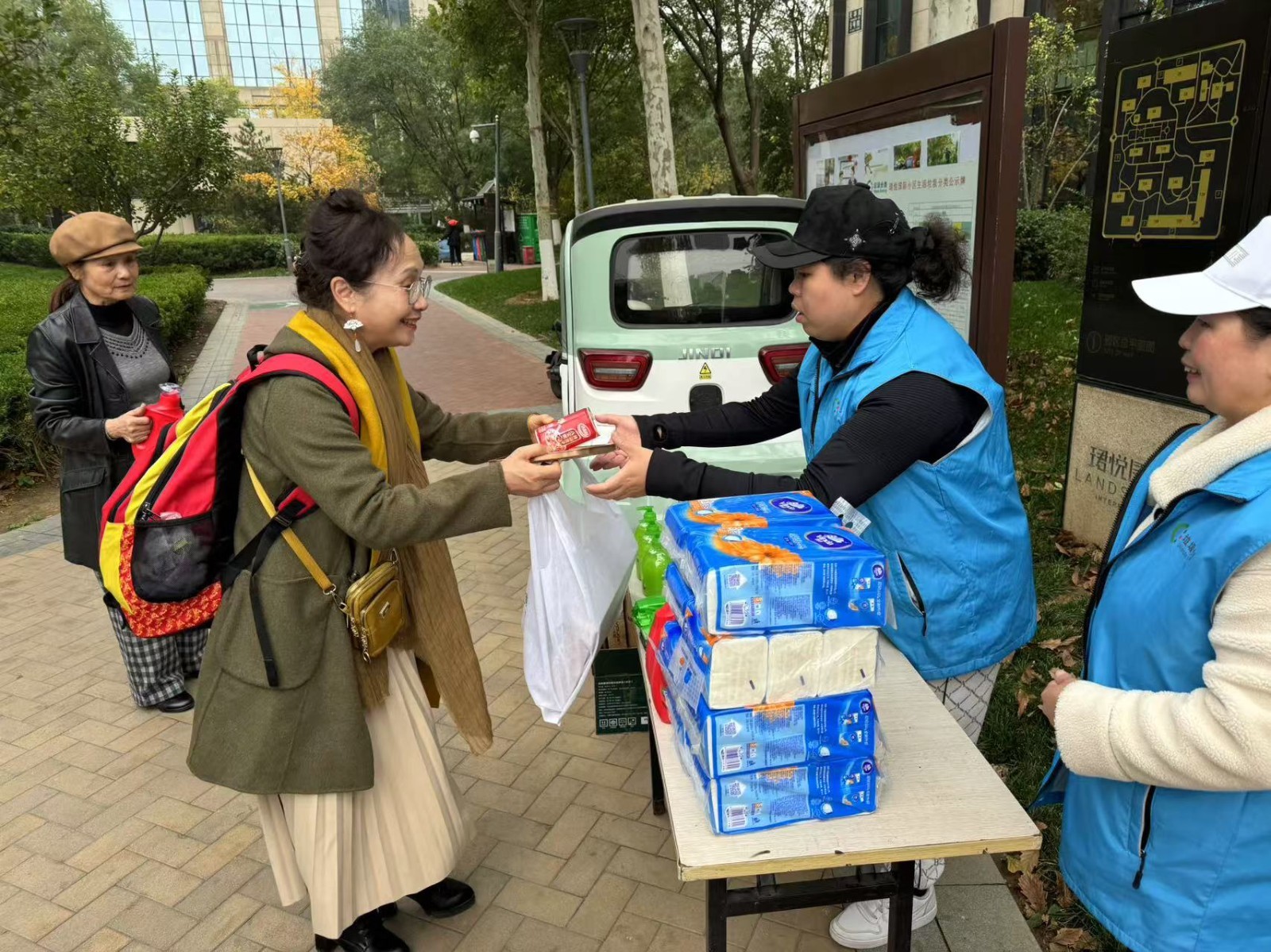 在活动现场,居民们积极参与,他们纷纷将自己平时在生活中收集起来的各种可回收物品,包括旧衣物、旧书籍、纸箱等拿到活动现场进行兑换。现场气氛热烈,大家热情高涨,纷纷展示自己收集的物品,希望通过这种方式为环保事业贡献一份力量。