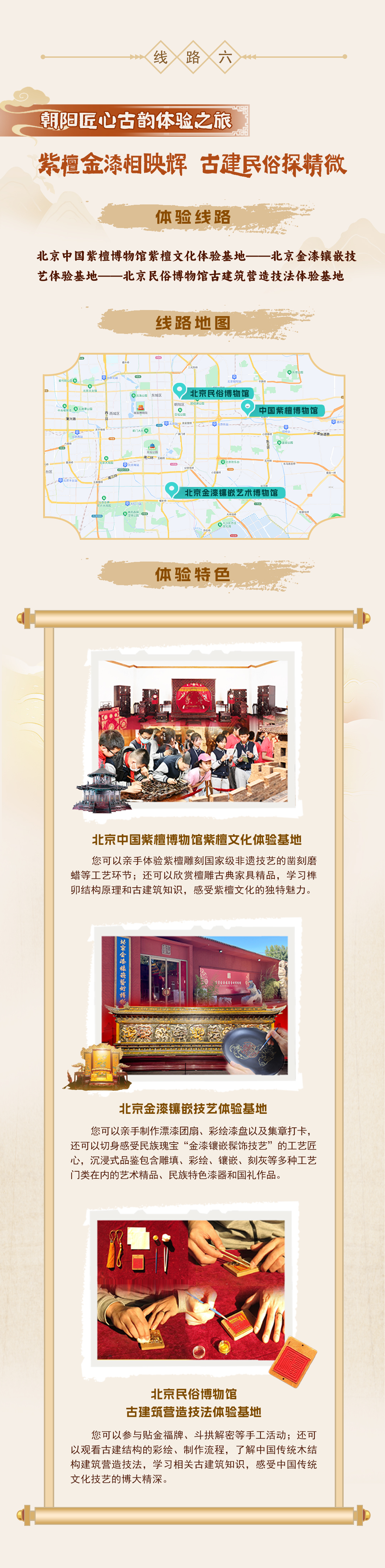 北京中国紫檀博物馆紫檀文化体验基地——北京金漆镶嵌技艺体验基地——北京民俗博物馆古建筑营造技法体验基地
