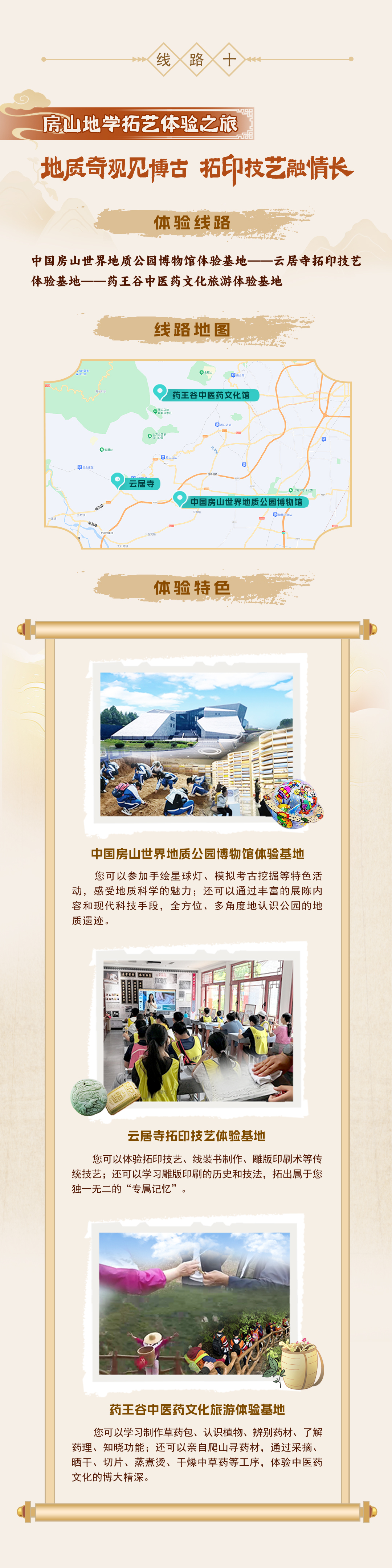 中国房山世界地质公园博物馆体验基地——云居寺拓印技艺体验基地——药王谷中医药文化旅游体验基地