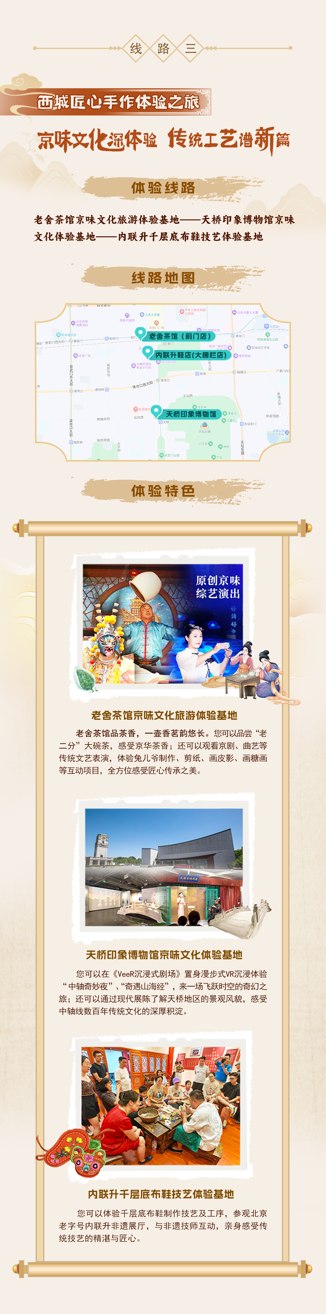老舍茶馆京味文化旅游体验基地——天桥印象博物馆京味文化体验基地——内联升千层底布鞋技艺体验基地