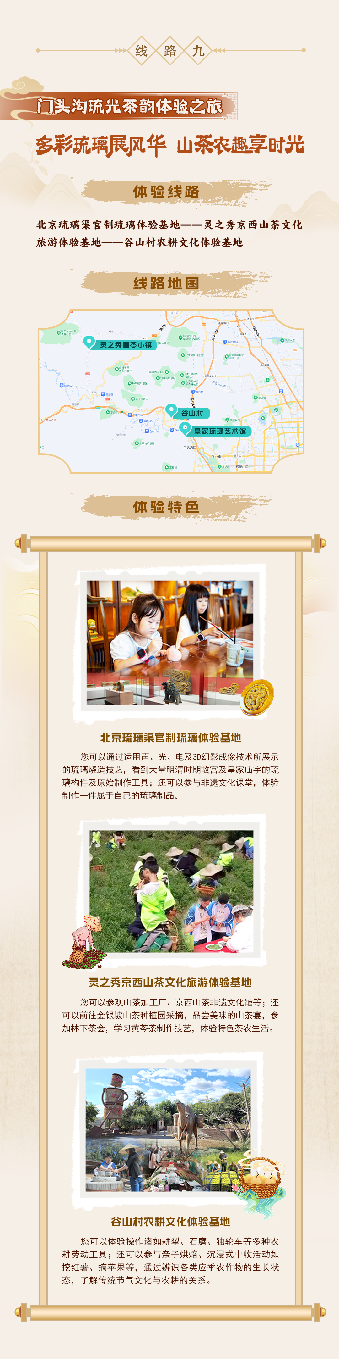 北京琉璃渠官制琉璃体验基地——灵之秀京西山茶文化旅游体验基地——谷山村农耕文化体验基地