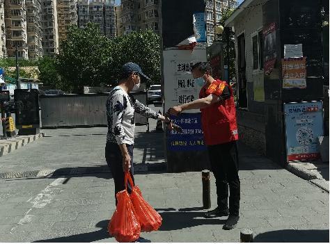 他每天值守近7个小时,不仅要承担社区值守工作,还要积极为居家隔离人员运送生活物资,上门送水、送菜、扔垃圾,第一时间满足隔离人员的生活需求,不辞辛苦地忙碌和坚守着。