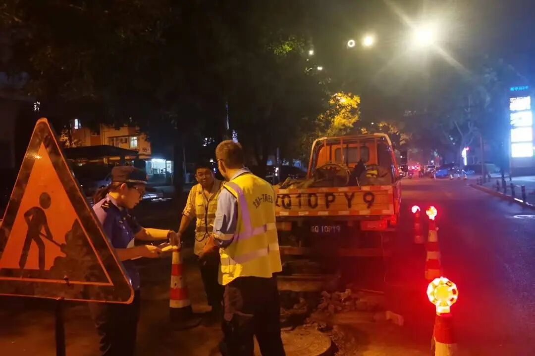 东城区城管执法部门指导施工单位进一步完善扬尘防控措施,对排查发现的问题,及时督促施工单位落实整改。同时,联合相关部门核查建筑垃圾运输车辆是否存在泄露遗撒、车轮带泥等情况,从源头阻断道路扬尘污染,从细节处守护国庆蓝天。