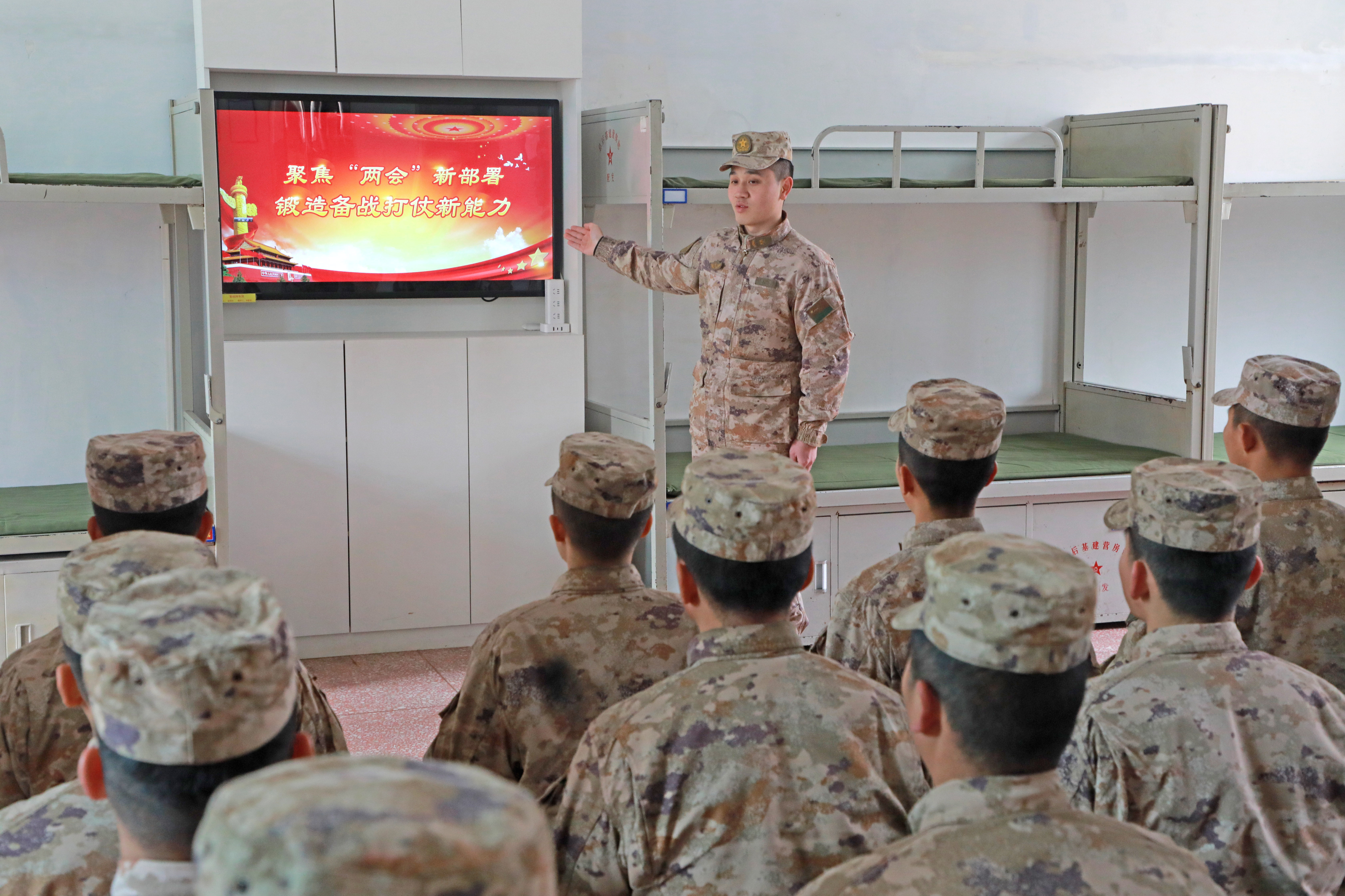 他们还将学习贯彻“两会”精神与训练难题攻关、战训法创新结合起来,围绕“聚焦“两会”新部署,锻造备战打仗新能力”为主题,展开讨论交流,使官兵在启发式研讨中,学习“两会”精神的深刻内涵,引导官兵把学习“两会”精神催生出的强军动能,贯注到日常练兵备战实践中。
