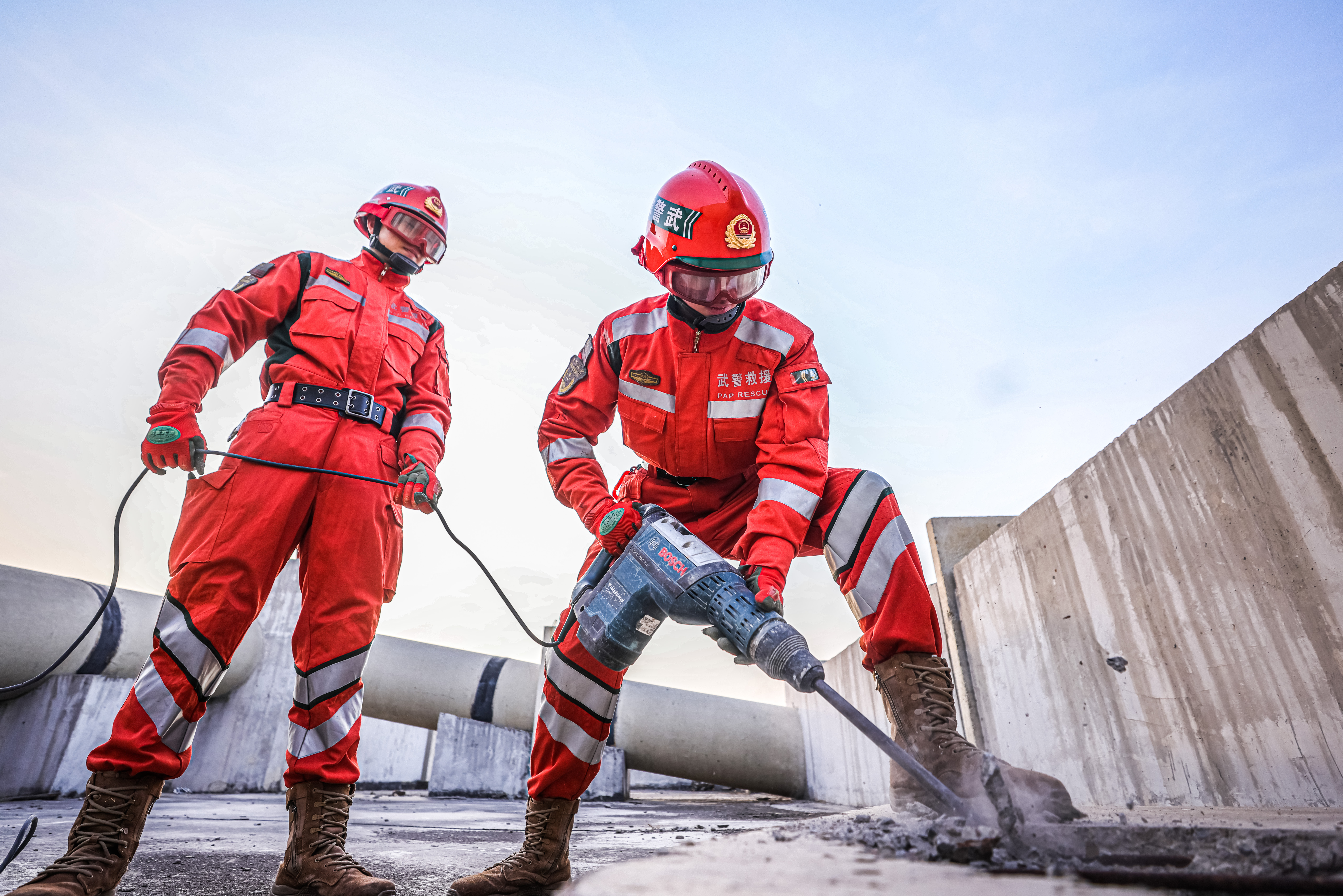 近日,武警天津总队某部工兵救援分队紧贴任务实际,开展地质灾害救援演练,锤炼部队应急救援能力。在演练救援现场,官兵们按照编组分工有序展开,重点围绕废墟搜索、顶撑破拆、狭小空间救援等课目开展训练,各小组配合紧密,成功将“被困人员”解救。