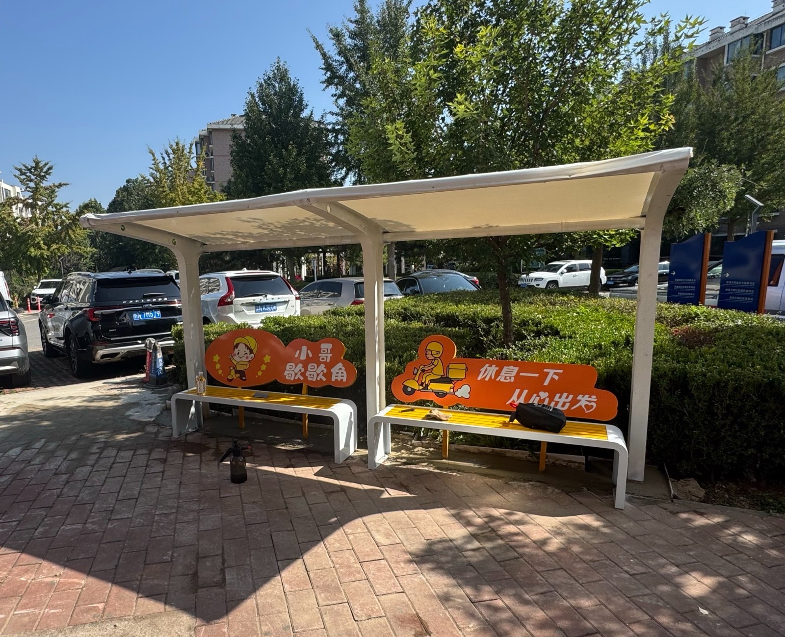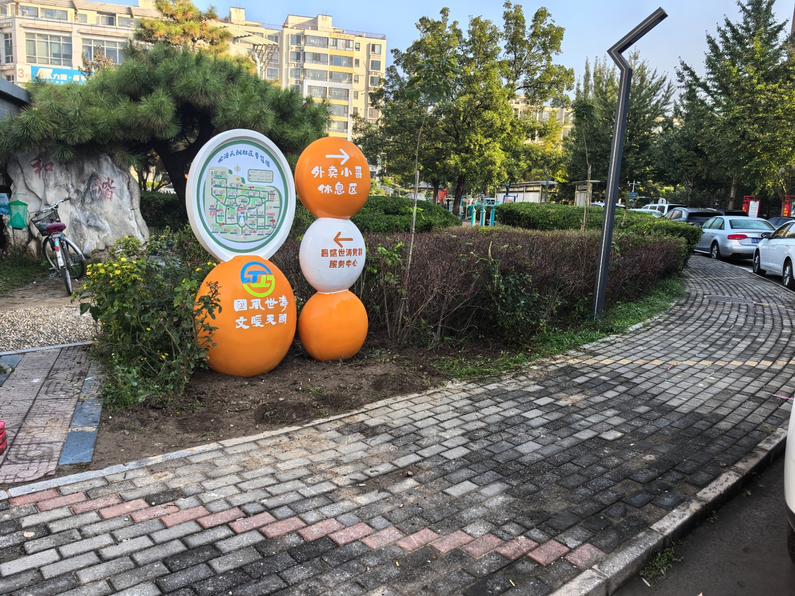 在基础设施升级方面,社区精准对接需求优化服务供给。党群服务中心内的综合服务角全时开放,为快递员、外卖员提供歇脚充电、应急药品、饮水热饭等一站式服务,成为“小哥”们的“暖心港湾”。同时,社区联动多方资源提质增效:制作友好社区地图指引、划定外卖车辆专用停放区、更新97个单元门牌标识,破解“找路难、停车难、找楼难”问题;引入智能换电柜,彻底解决电动车辆续航顾虑。