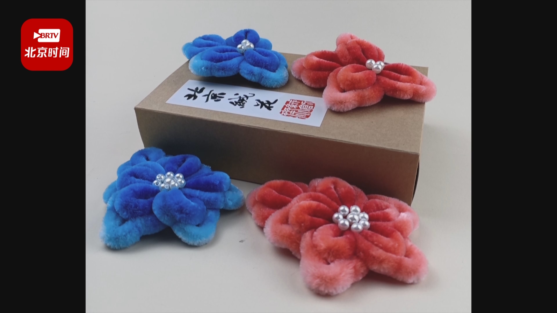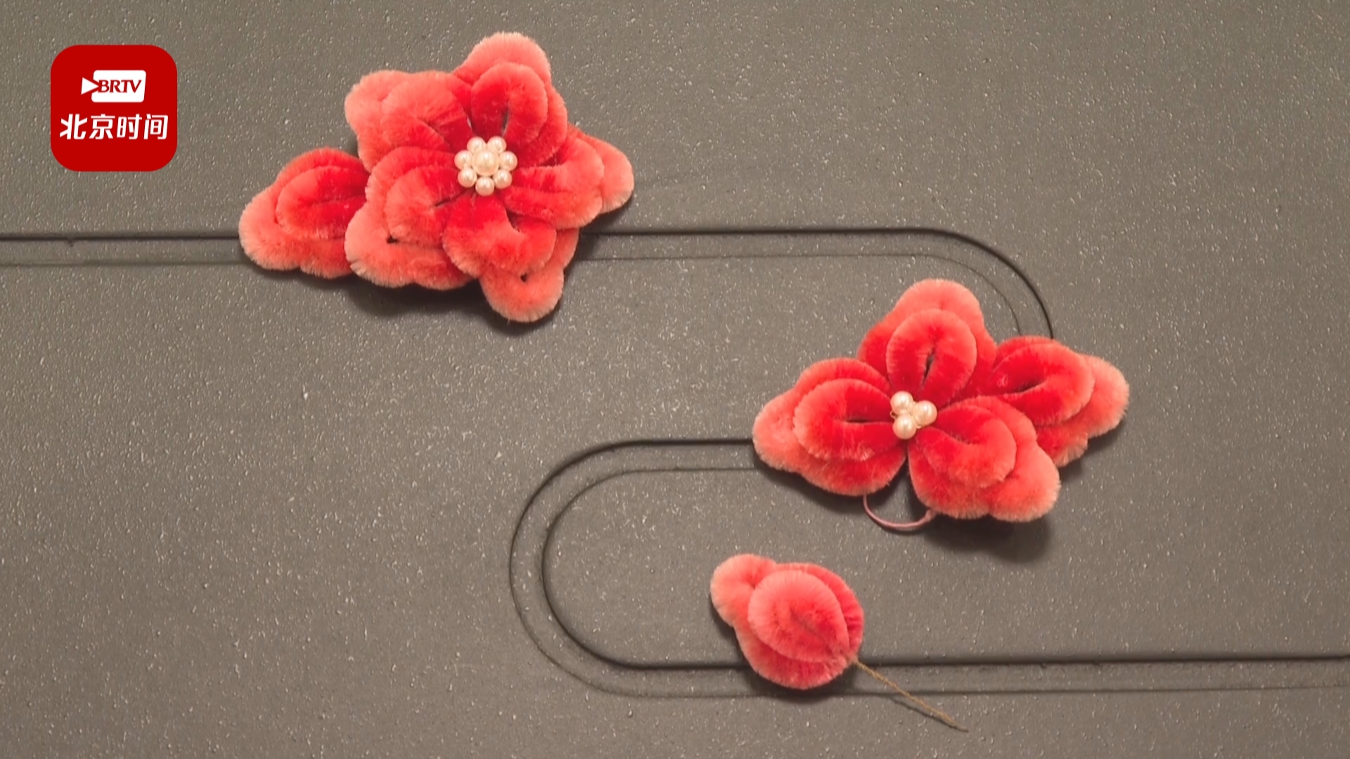 赛时服务于颁奖广场的“唐花飞雪”系列礼服,女帽上一前一后镶嵌了两朵老北京绒花作为装饰。这些绒花是由北京绒鸟绒花第六代传承人蔡志伟“操刀”制作。