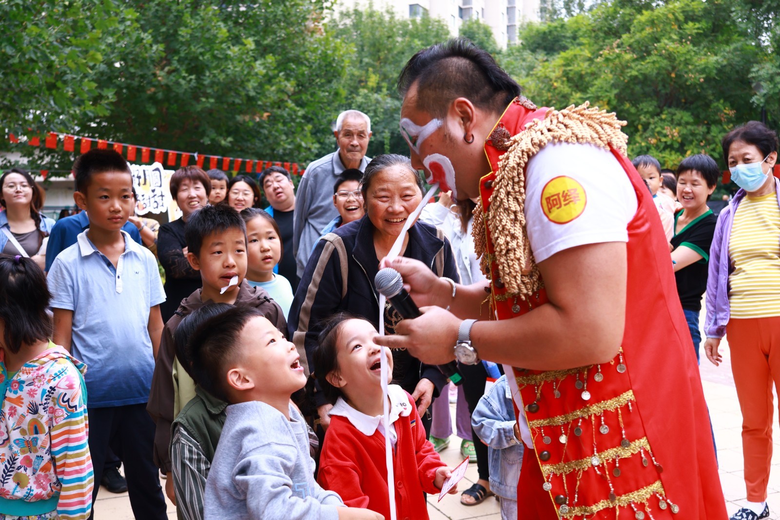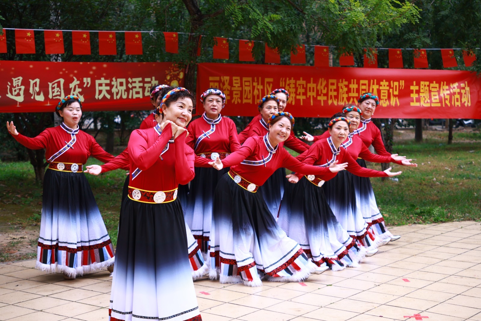 在表演环节,节目内容紧扣“家国情怀”与“社区温情”,层层递进点燃现场气氛。社区舞蹈队率先登场,队员们身着绚丽民族服饰,以灵动舞姿演绎《藏家儿女心向党》,生动展现各民族同心向党的深厚情感,一开场便赢得满堂喝彩;随后,社区党员代表带领居民开展朗诵与合唱表演《腾飞的中国》,激昂的文字回顾祖国波澜壮阔的发展历程,嘹亮的歌声歌颂新时代的辉煌成就,引发在场居民强烈的民族自豪感与情感共鸣;舞蹈队再度登台,以温馨柔和的编排演绎《我们共同的家》,用肢体语言诠释社区邻里互助、携手共建幸福家园的美好愿景,将现场氛围推向高潮;活动还特别邀请专业魔术师带来表演,奇妙的道具变换与趣味十足的观众互动,让大人与孩子共同沉浸在魔法乐趣中,进一步提升了活动的吸引力与参与感。