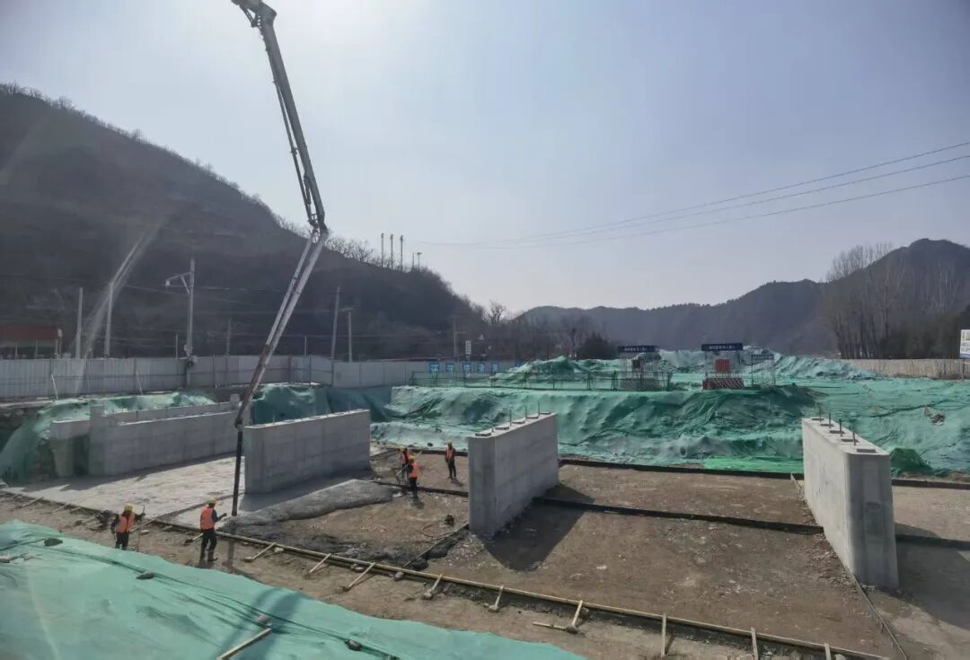 与此同时,怀九河治理工地同样繁忙。在九渡河镇红庙桥施工现场,混凝土浇筑车加紧作业,工人们正在为桥台基础进行浇筑施工。