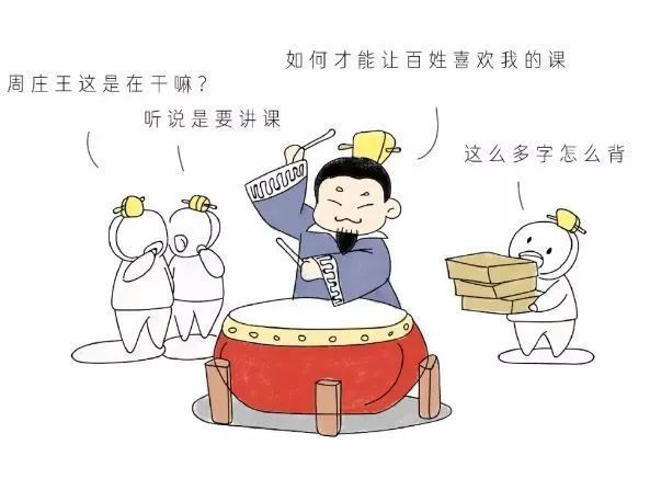 这件事流传开来,人们就说,边打鼓边说的形式是周庄王创造的,以至于后世的鼓曲艺人都把周庄王当做祖师爷供奉。
