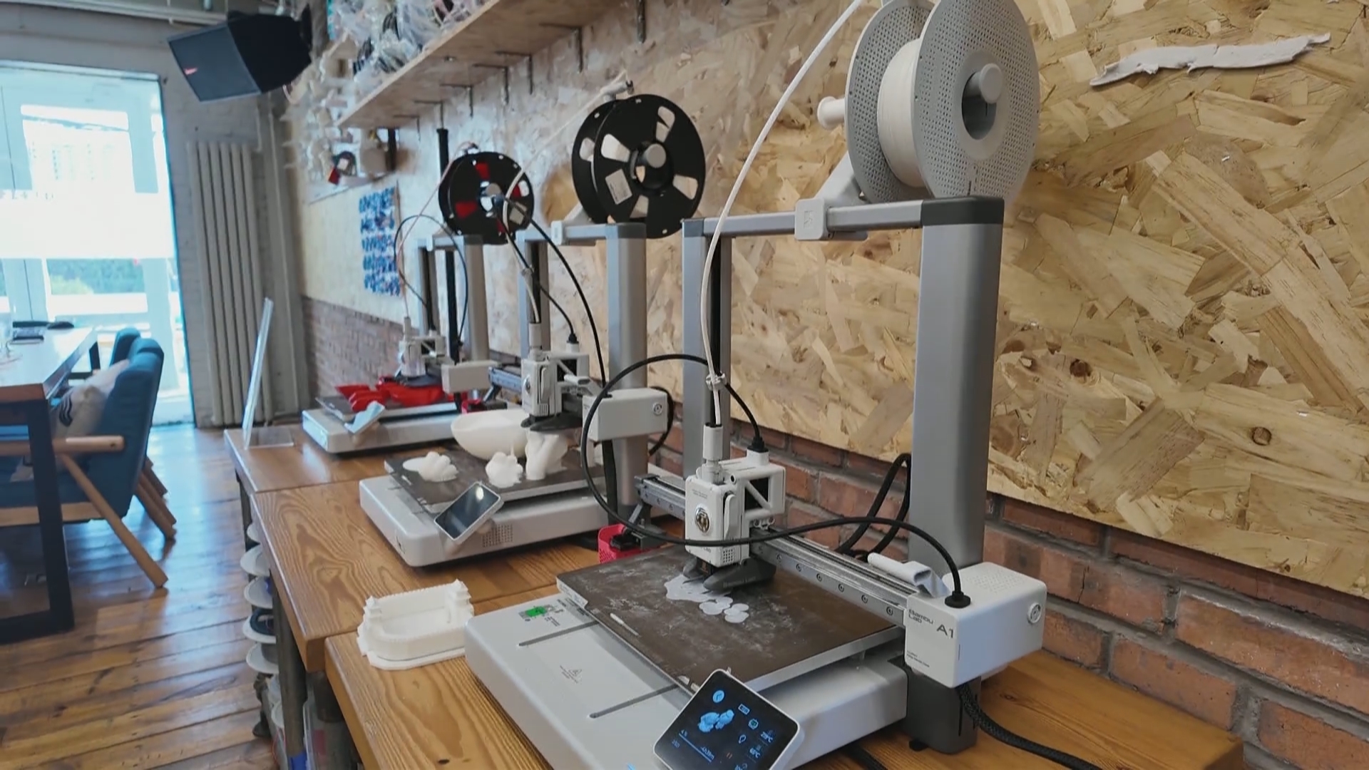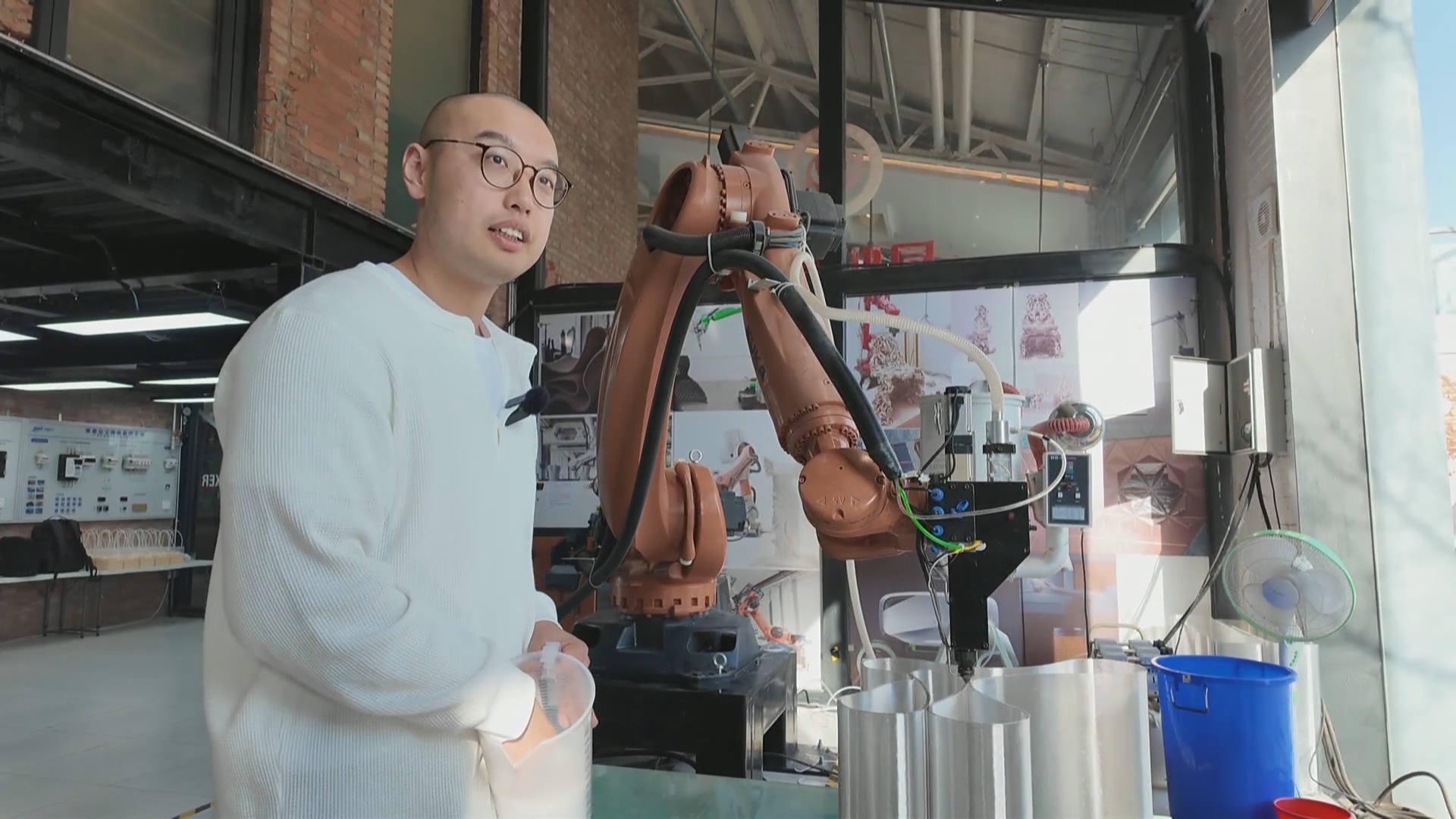 在北京10号线“青创村”里,一幢老厂房已经变身为充满未来感的“梦工场”实验室。创始人张翊超正在帮年轻人“圆梦”——用大型3D打印机将其设计的椅子一点点变成现实。