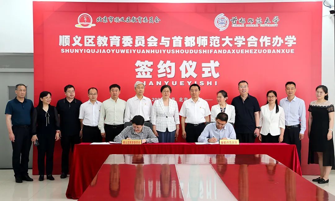 日前,顺义区教委与首都师范大学、东城区府学胡同小学举行合作办学签约仪式。顺义区合作办学再添优质资源,将进一步满足顺义百姓在家门口“上好学”的教育愿望。