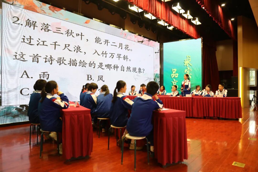 在“飞花令”环节,同学们围绕“花”“月”“春”等关键字,轮流吟诵含该字的诗词,展现了同学们深厚的诗词底蕴。这一环节中,同学们不仅展现了个人的才华,更在激烈的竞争中学会了相互欣赏与鼓励。