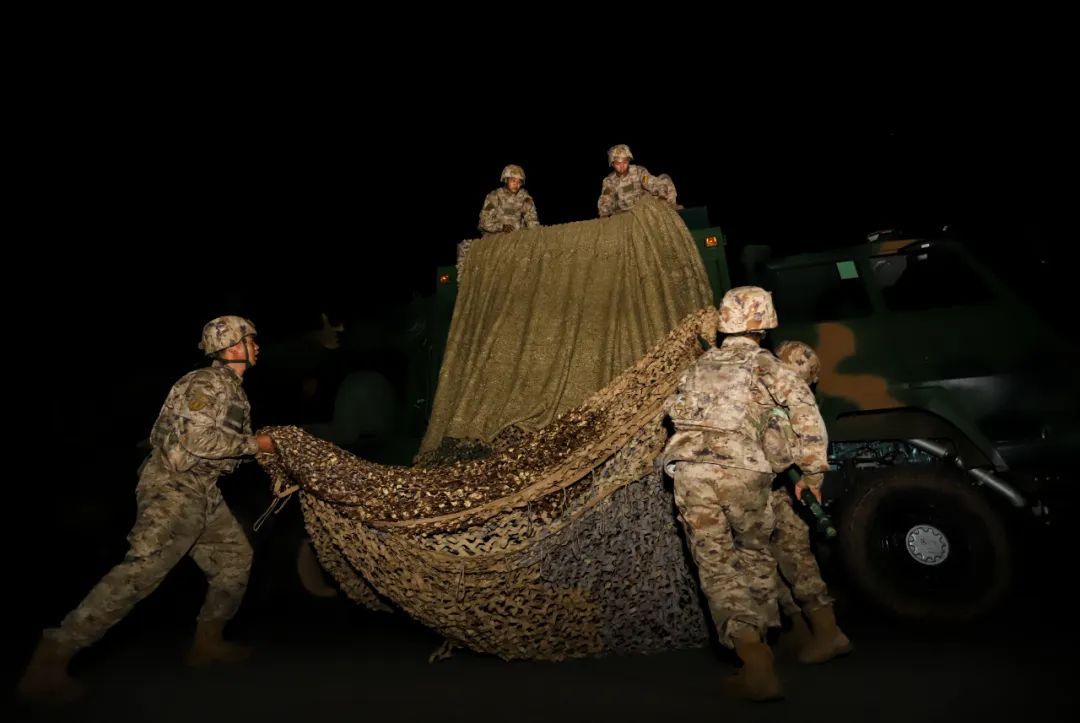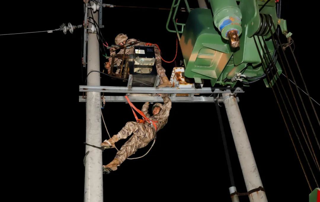 指挥员沉稳处置,按照方预案展开人员编组及任务分工,官兵迅速领取装备物资、整队集合、登车准备……随即,应急工程保障车、电力抢修车等开赴目标地域。