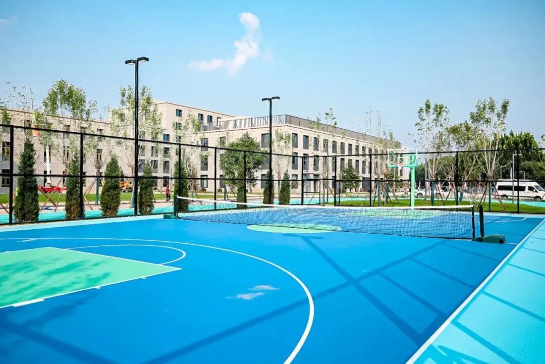 通过景观设计软化校园边界,以“针线”“纽扣”为设计意象串联功能区,搭配错落种植的樱花树景观,既实现校园开放共享,又守住安全边界,传递出师生携手、校城相融的温暖愿景。